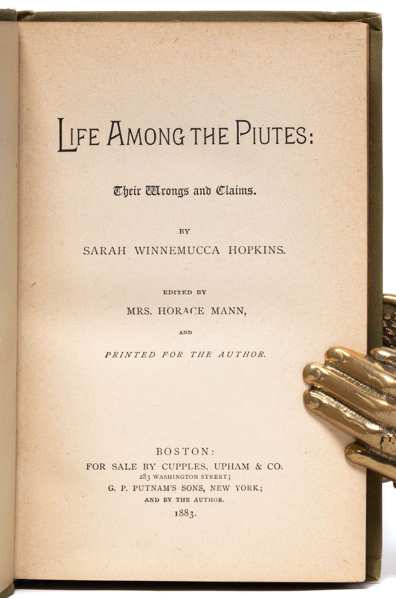 Life Among the Piutes: Their Wrongs and Their Claims...Edited by Mrs. Horace Mann