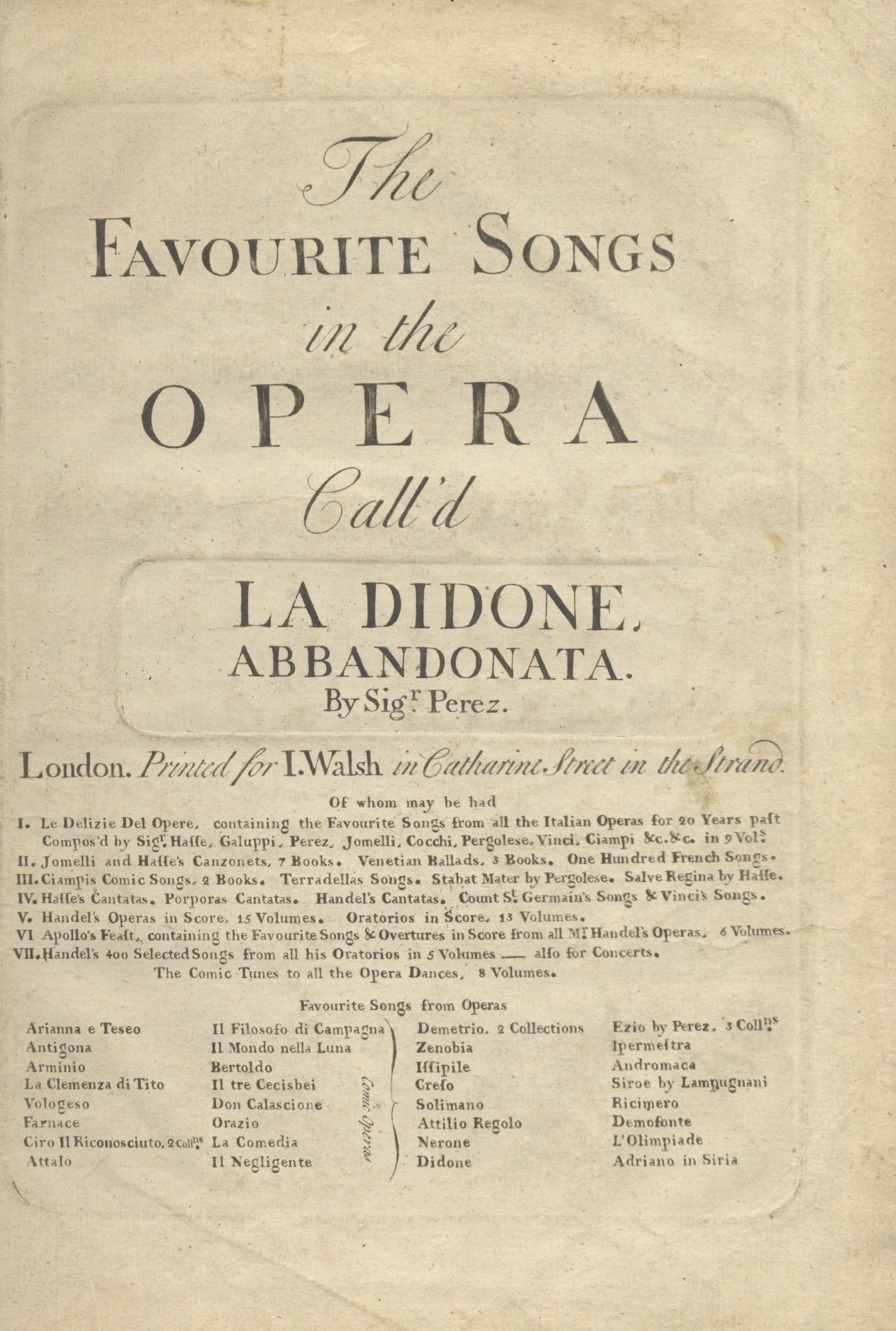 The Favourite Songs in the Opera Call'd La Didone Abbandonata. [Score]
