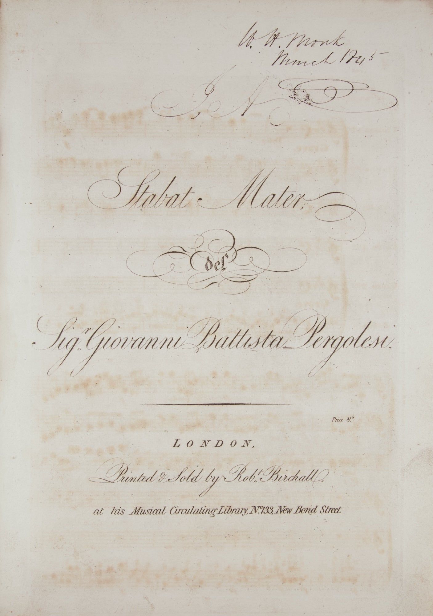With the autograph signature of the British organist and composer William Henry Monk 1823-1899) dated March 1845 in manuscript to free front endpaper and "W. H. Monk March 1845" and "J.A." in the same hand to title.