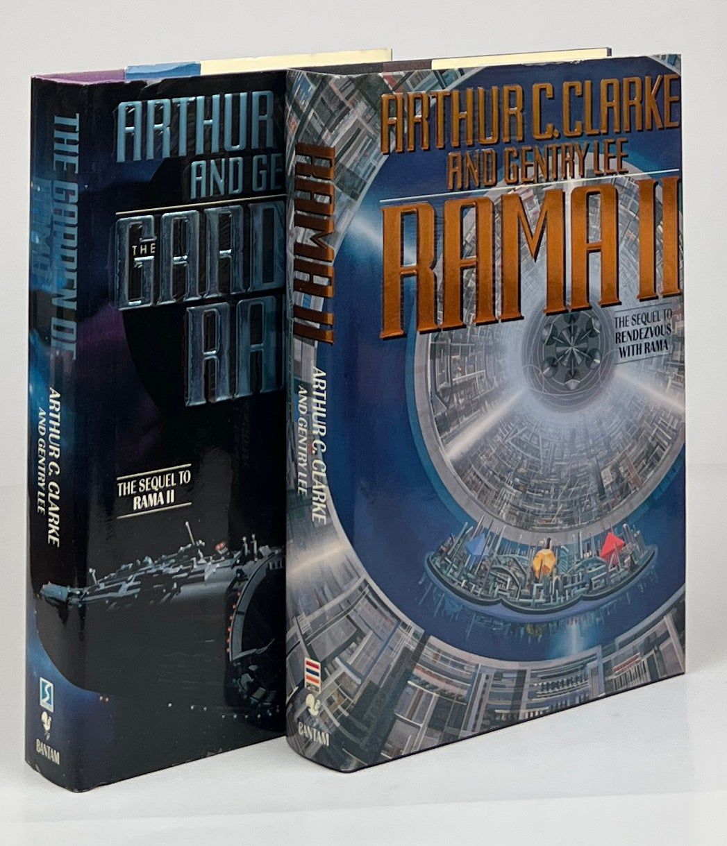 New York: Bantam | Warner Books, 1991. First Edition. Hardcover. Near Fine/Near Fine. Near Fine in Near Fine jackets, unclipped ($18.95 and $20.00), toned at the flaps, some pulling to the laminate. Quarter cloth with paper on the boards. Square and firmly bound, a few spots of soiling at the edges, blindstamp on the front endpaper of Rama II, clean otherwise. The second and third novels in the Rendezvous with Rama series.