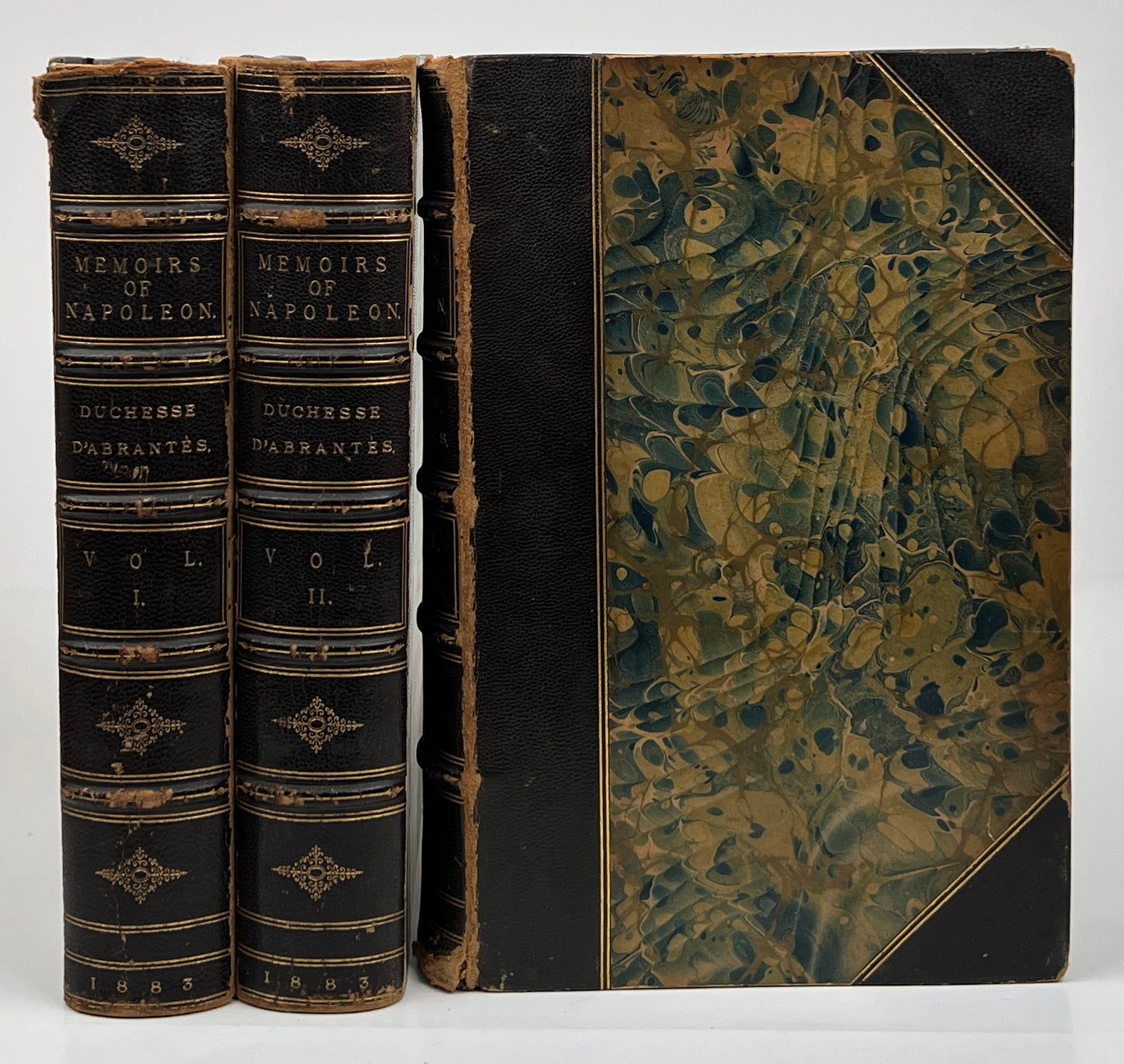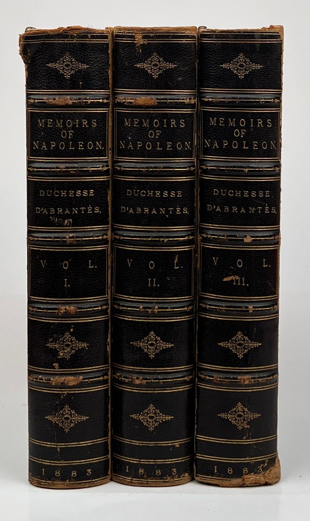 London: Richard Bentley and Son, 1883. New and Revised Edition. Leather-bound. Good. Complete in three volumes. Good. Half-leather with marbled paper on the boards, scuffed to the boards at the bottom edges, joints heavily rubbed, a few tears in the leather on the spine. Square, hinges a bit loose, firmly bound otherwise, former owner's signature on the front free endpapers.