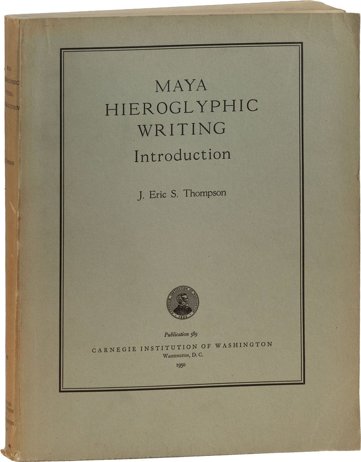 Washington, D.C.: Carnegie Institution, 1950. First Edition. Softcover. Quarto (29cm); gray paper wrappers; [xxii],347,[64 illus.]pp; black-and-white photographic halftones and illustrations. Publication No. 589. This copy is from the library of noted poet, translator, and anthropologist Nathaniel Tarn (1928-2024), with his occasional pencilled marginal notes. Archival tape reinforcement to hinges. Tanned with modest shelf-wear, trace soil, and light creases to wrapper edges and text margins; Good. Report focus includes Maya graphology, 260-day cycle, 365-day year, numbers, and the moon. [87945].