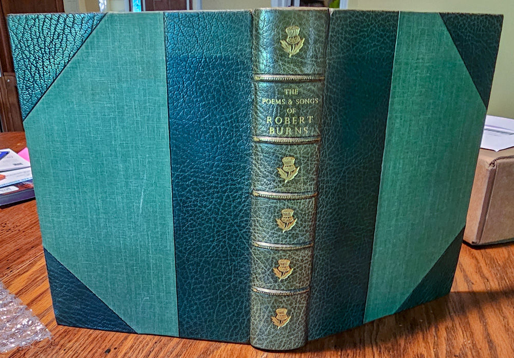 London: Methuen & Co. Ltd, 1896. Hardcover. Just about Fine. Bound in 3/4 green morocco leather by Bayntun (5-3/4" x 8-3/4") with gilt-decorated and lettered spine, marbled endpapers, top edge gilt; xlvi, 668 pages. Illustrated with a portrait of Burns. Edited with introduction, notes, and glossary by Andrew Lang.