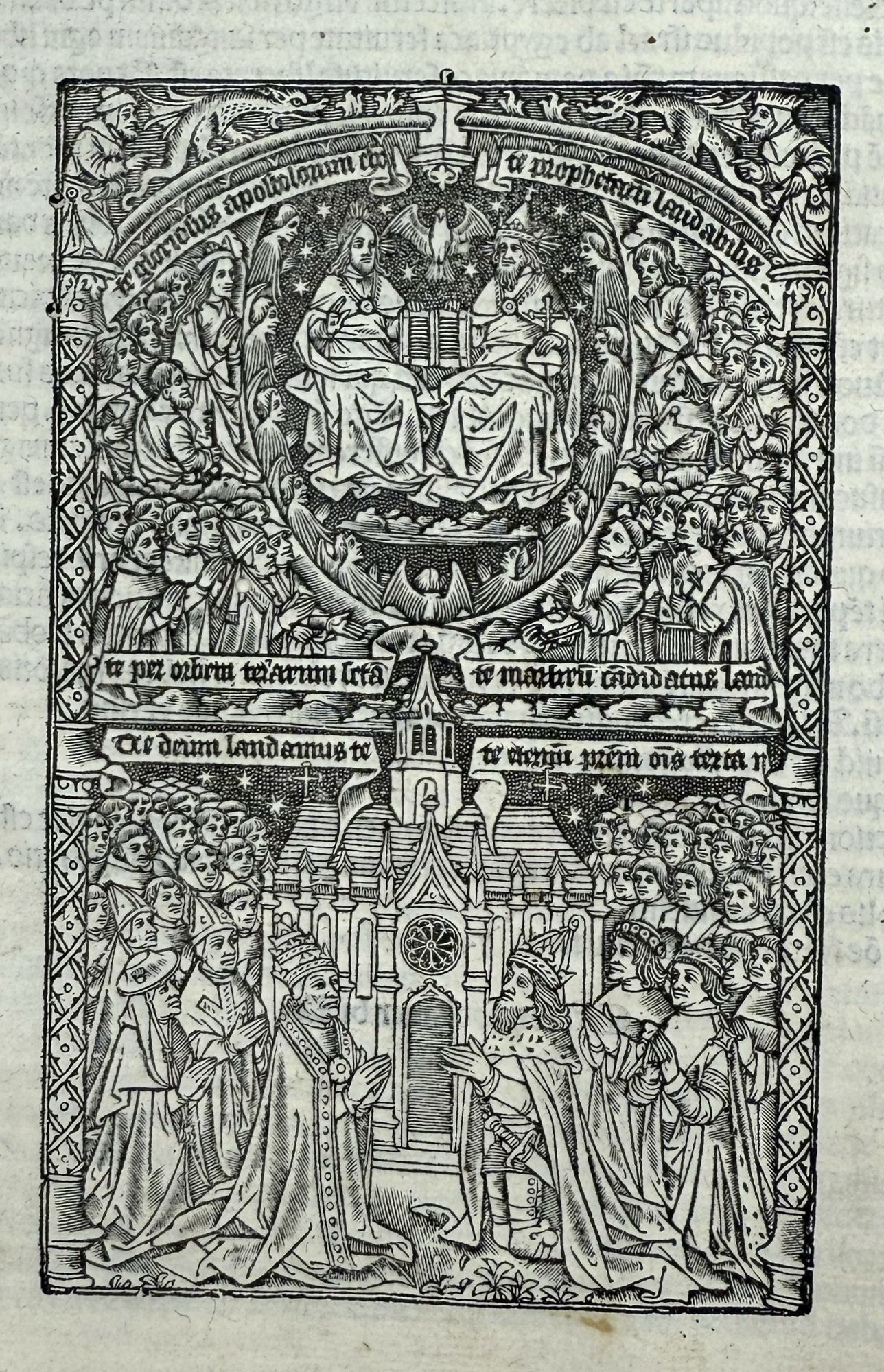 - Title page printed in red and black, with device of Jehan Petit, repeated at end on 348v. With gilt illuminated initials at Epis