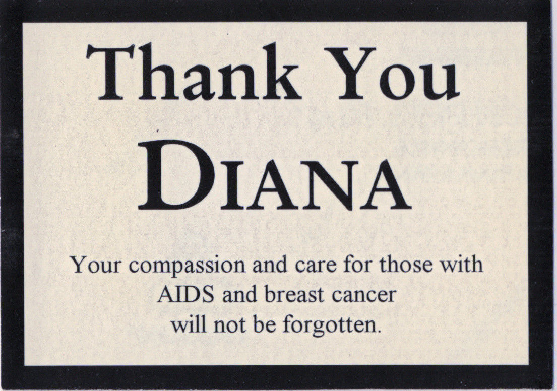 Sticker: "Thank You Diana / Your compassion and care for those with AIDS and breast cancer will not be forgotten"