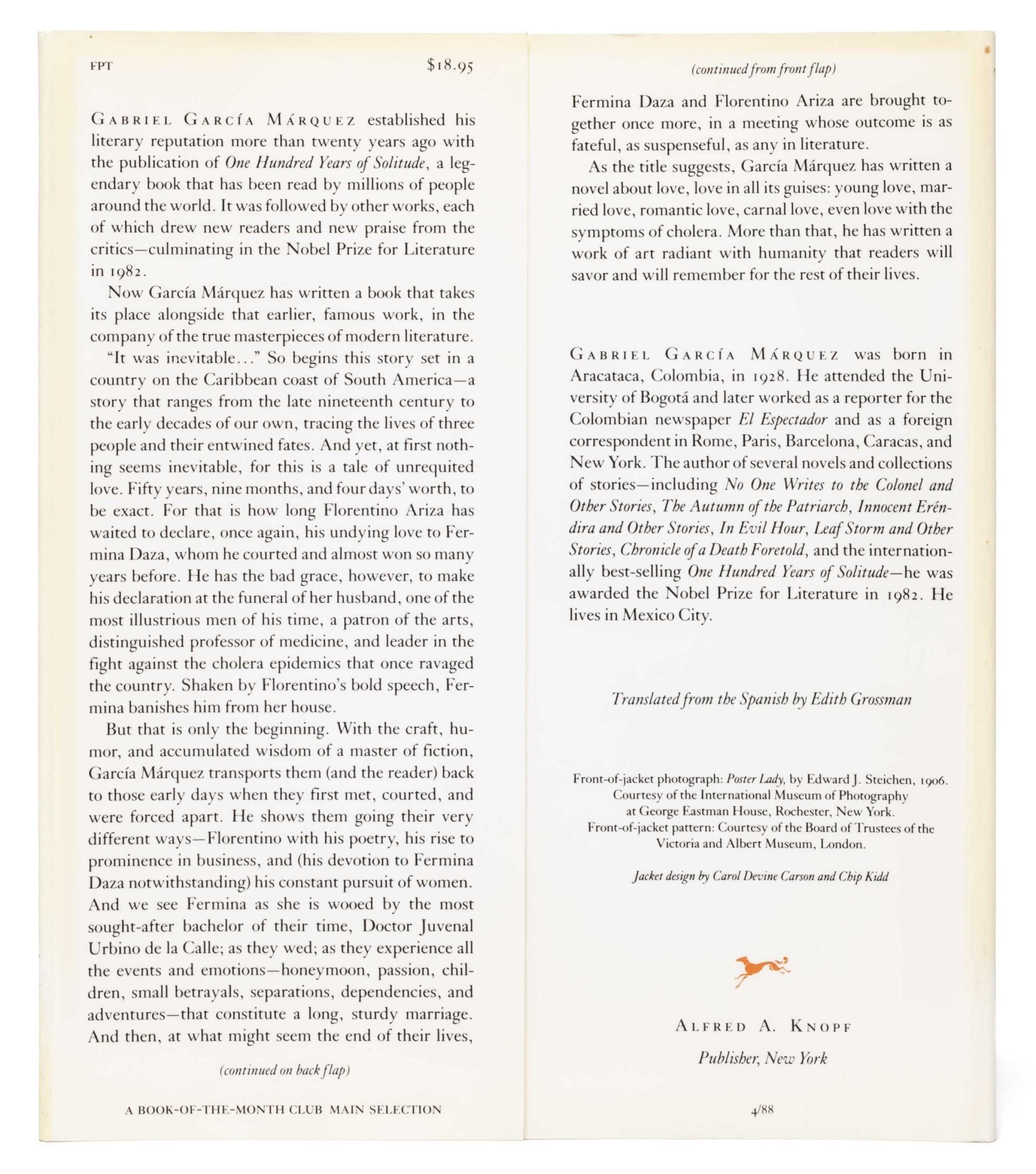 García Márquez's iconic novel of love, passion, and death is considered his best alongside One Hundred Years of Solitude. The novel was García Márquez's first published after he won the 1982 Nobel Prize in Literature "for his novels and short stories, in which the fantastic and the realistic are combined in a richly composed world of imagination, reflecting a continent's life and conflicts" (Nobel Foundation). It was adapted for the screen in 2007 starring Javier Bardem, Giovanna Mezzogiornio, and Benjamin Bratt.