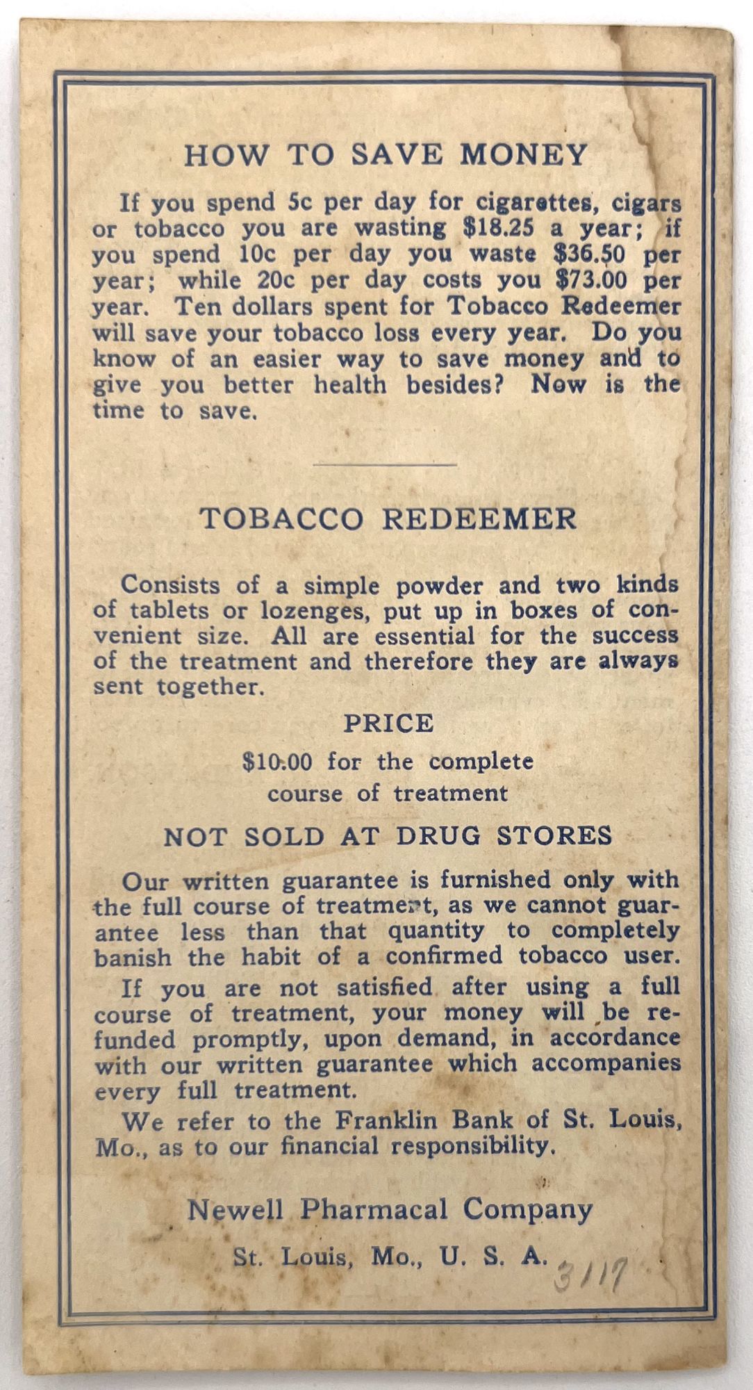 Tobacco Redeemer" -- c.1920 Advertisement for Tobacco Addiction Cure