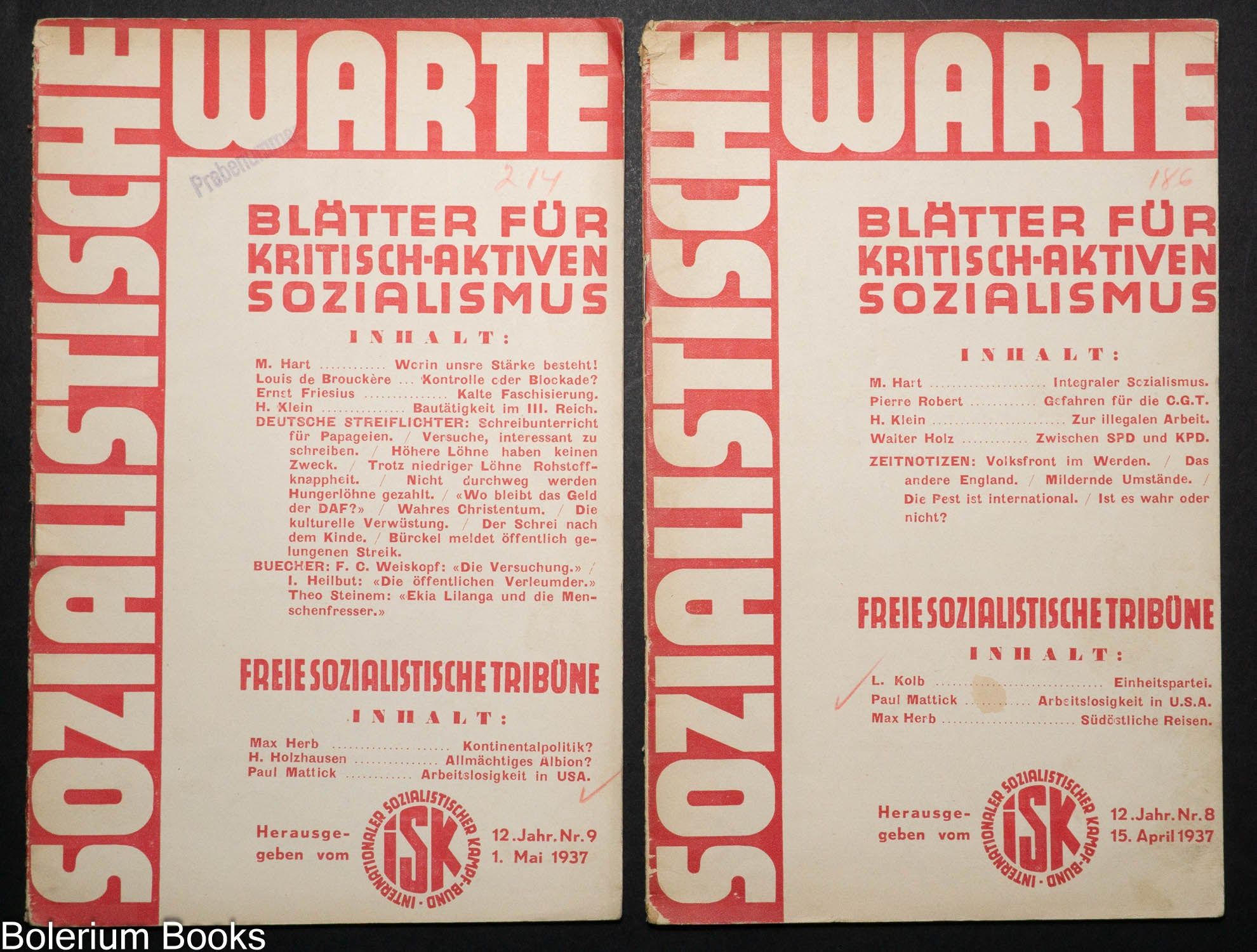 Sozialistische Warte; Blätter für kritisch-aktiven sozialismus, 12. Jahr. Nr. 8 (15. April 1937) [and] 12. Jahr. Nr. 9 (A. Mai 1937) [two consecutive issues]