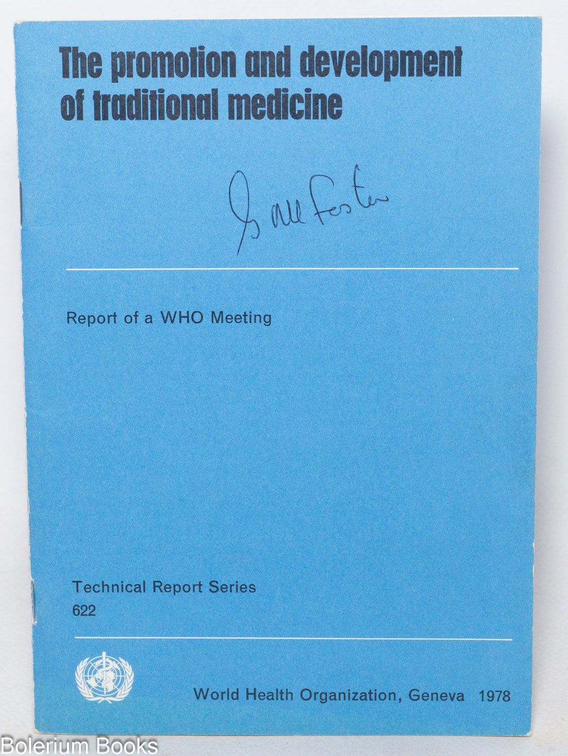 Geneva: World Health Organization, 1978. Pamphlet. 41, [3] pages, staplebound pamphlet. Former owner’s name on front cover in pen: G[eorge] M[cClelland] Foster[?]. Marginal annotation and some underlining in red ink. Very Good.
