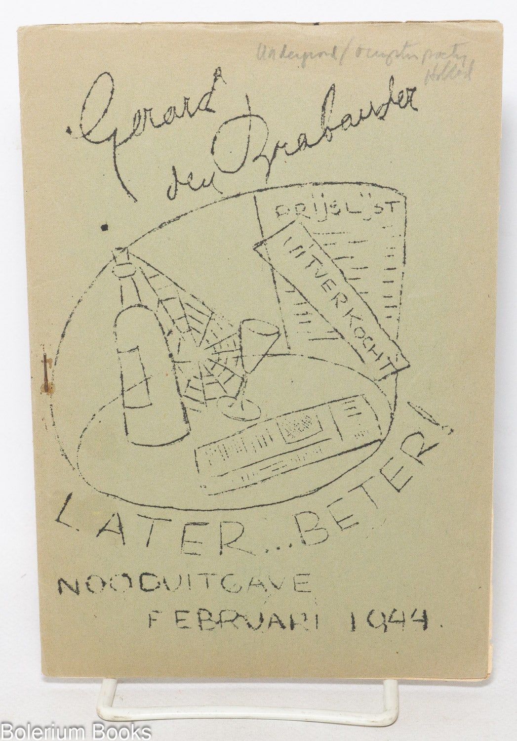 Amsterdam: [self-published], 1944. Pamphlet. [22] pages, illustrations, staplebound pamphlet. Staple rusted, minor discoloration to edges, otherwise Very Good. Dutch underground publication. Poetry by Brabander, the nom de plume of Jan Gerardus Jofriet, a poet and book cover designer.