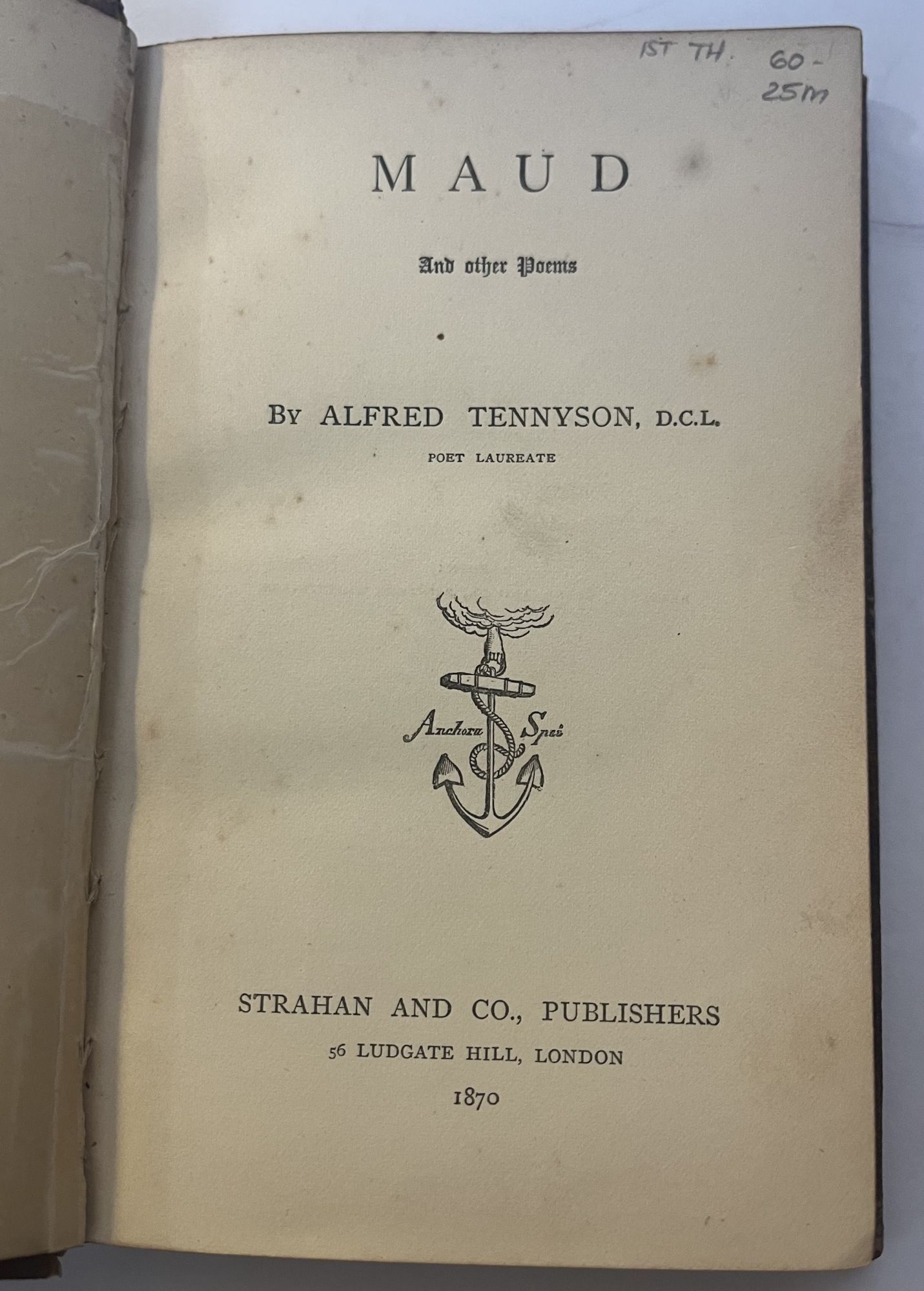 London: Strahan and Co., Publishers, 1870. Early Edition. Hardcover. Octavo, 170 pages. In Very Good minus condition. Bound in full leather with paneling, gilt decoration, and a black label with gilt lettering to spine. General shelf wear. Edges of textblock gilt. With marbled endpapers. Tearing and non-archival tape to front free endpaper. Minor foxing scattered throughout. Shelved under the Front Counter. 1407508. Shelved Dupont Bookstore.
