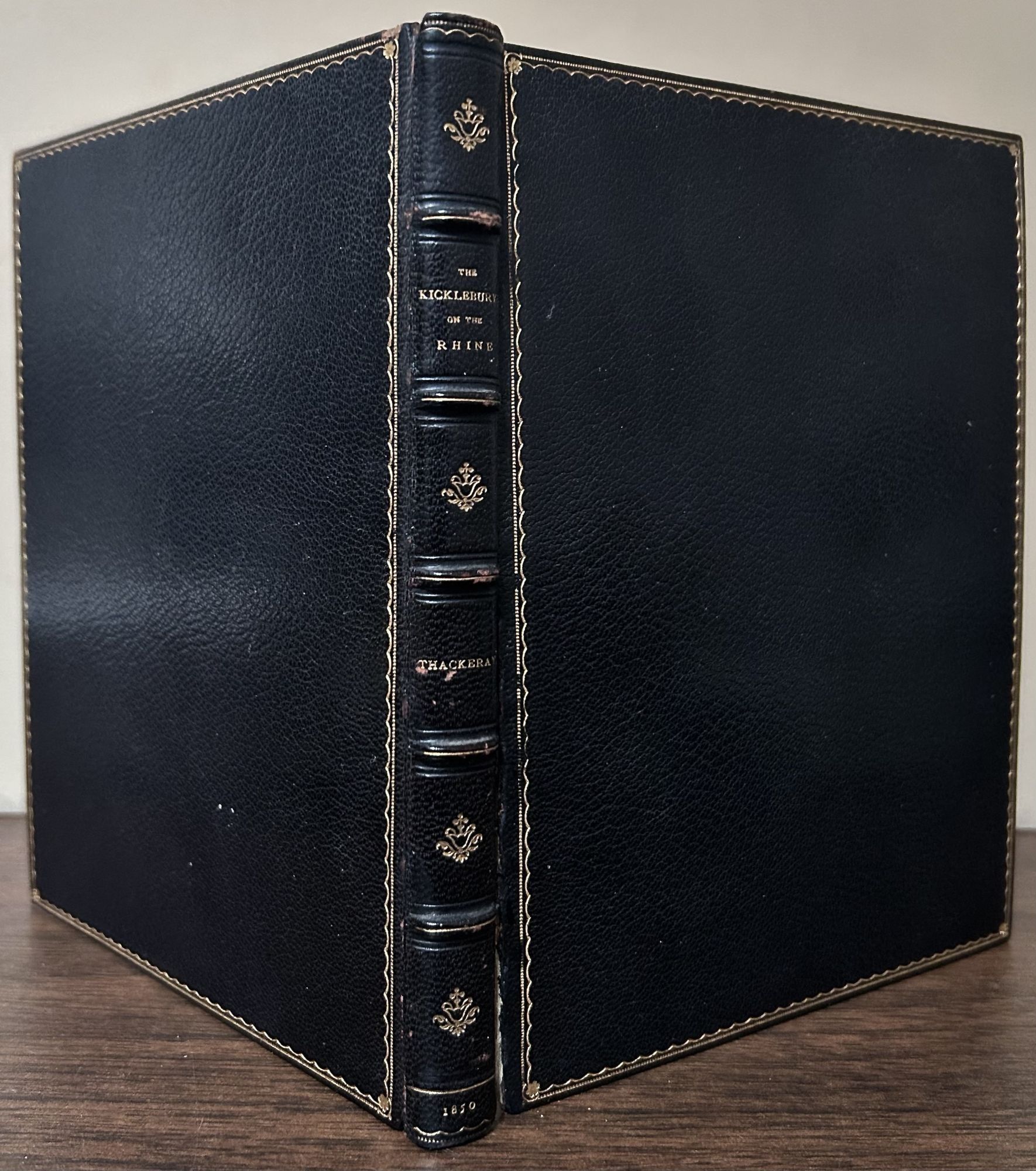 London: Smith Elder & Co, 1850. First edition. leather_bound. Full black morocco. Teg. Fine. [iv], 87, [1], [2 ad] pages. 18 x 14 cm. Hand-colored illustrated title page, frontispiece and 13 full-page plates. One of Thackeray's very popular Christmas books. Six titles were eventually published, between 1847-1855. This work satirizes the aristocracy of England and their frivolous way. Bound by Zahensdorf, raised bands, spine lettered with gilt arabesques and inner dentelles.