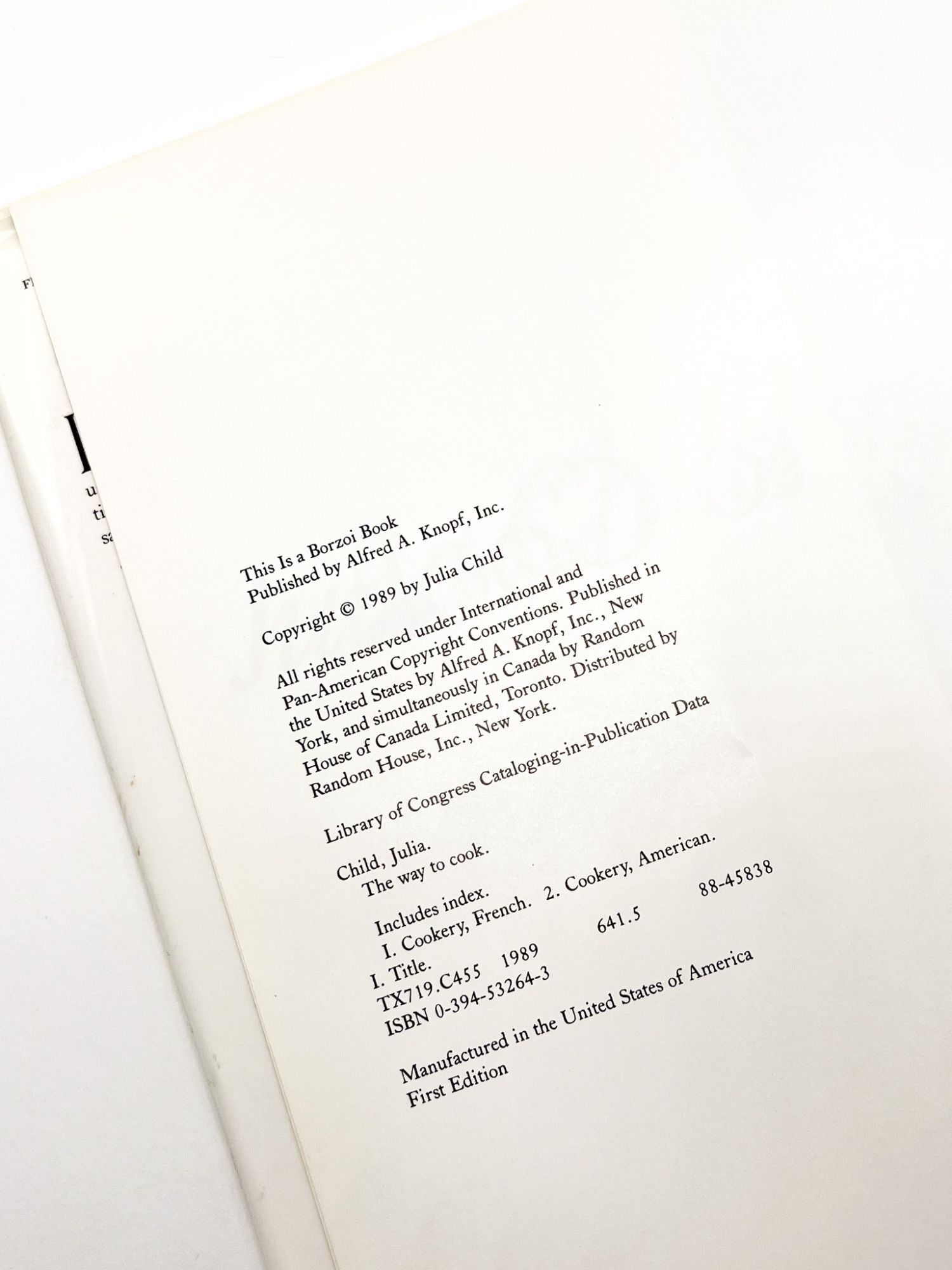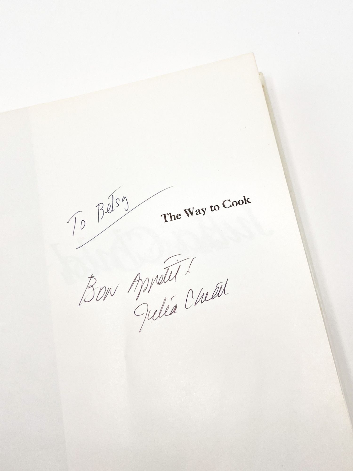 New York: Alfred A. Knopf, 1989. First printing. Near fine in a near fine jacket.. Inscribed first edition of this cookery classic, widely considered to be Julia Child's magnum opus. There are few names more synonymous with cooking in the US than Julia Child. THE WAY TO COOK sees the grand dame of the kitchen step away from her French roots, emphasizing a "comfortable, you-can-do-it, unintimidating" cooking style that foregrounds ingredients a reader can buy at any grocery store (MIAMI HERALD). It was successful even before it hit the shelves, earning the accolade of being the first cookbook to be chosen as the main selection of the Book of the Month Club; it has remained a classic. 10.75'' x 9''. Original color patterned boards. Original unclipped ($50.00) color pictorial dust jacket, designed by Carol Devine Carson. Orange endpapers. Illustrated in color. 512 pages, including index. Inscribed by Child to half-title page" "To Betsy / Bon Appetit! / Julia Child." Jacket spine lightly sunned. Touches of edgewear. A few small spots of faint soil here and there. Overall, sound and bright.