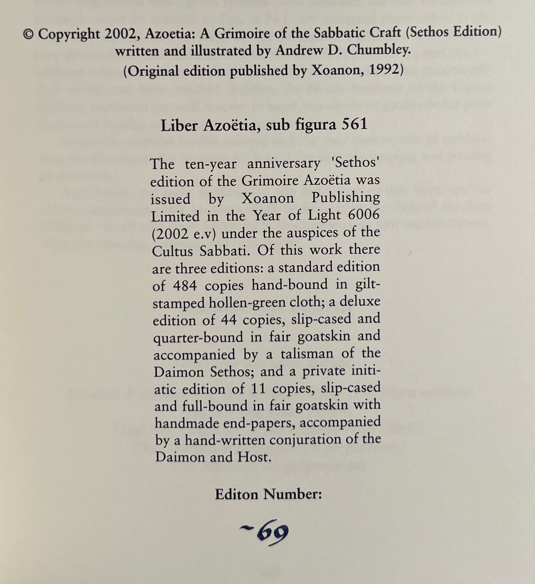 Azoetia: A Grimoire of the Sabbatic Craft; The Sethos Edition