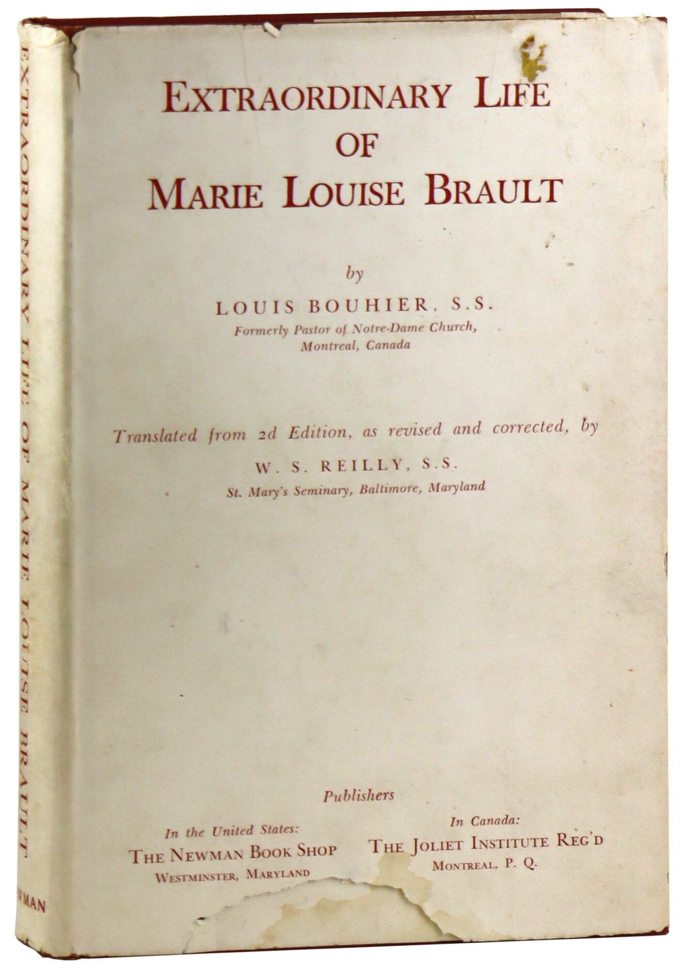 Uncommon biography of the Canadian mystic Marie Louis Brault (1856-1910) whose life was filled with unusual phenomena, including poltergeist-like disruptions in her home. One contemporary remembered, “She had on her forehead a line of deep wounds, from which blood issued. . . . She had similar wounds on [her] hands, feet, and side. These wounds became deeper during Lent" (Dictionary of Canadian Biography).