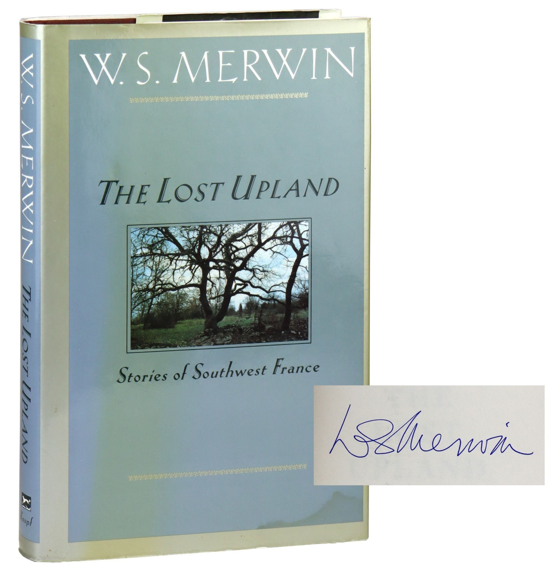 Dust jacket toned with faint dampstain on lower front panel. Some creasing to edges. Topstain faded. Dampstain on lower corner of front board. Corners square. Binding sound. Pages clean and unmarked. Signed by W.S. Merwin on half title page. Overall, a very good copy in like jacket.