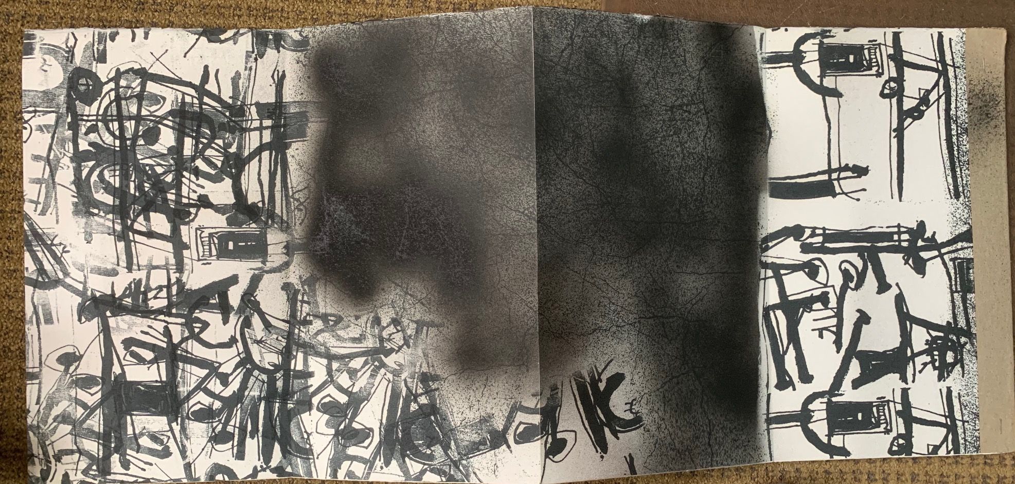 México, D.F.: Cocina Ediciones Mimeográficas, 1982. mimeographed pages, b/w plates, folded accordion style and stapled to b/w pict. wrps., ink stampings. Handmade artists book comprsing a mimeographed print created by abstract artist Mario Rangel Faz (Mexico 1956-2009) who belonged to the Grupo Suma along with Gabriel Macotela, Paloma Díaz Abreu, René Freire, Santiago Rebolledo and Armandina Lozano, among others. He collaborated with Ediciones La Cocina, who sponsored his artist's books under the support of Yani Pecanins and Gabriel Macotela.