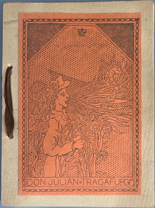 México, D.F.: Cocina Ediciones Marginales, 1978. (with small round yellow sticker "0028" taped in verso cover). mimeographed pages, b/w plates, loose as issued, carboardboard boards, two-hole binding with brown silk ribbon tied in a knot in verso cover, duotone illus. plate tipped-in in front cover. Artists book comprising short story by film director Walter Doehner (Mexico 1955) with illustrations by Gabriel Macotela (Guadalajara, México 1954), a painter, sculptor, set designer, editor and musician. "Consta de 80 ejemplares hechos en mimeógrafo."--Colophon. LIMITED EDITION OF 80. Ref: Libros De Artista. Teoría Y Praxis Desde La Experiencia De “El Archivero”. By Luz del Carmen Vilchis Esquivel.