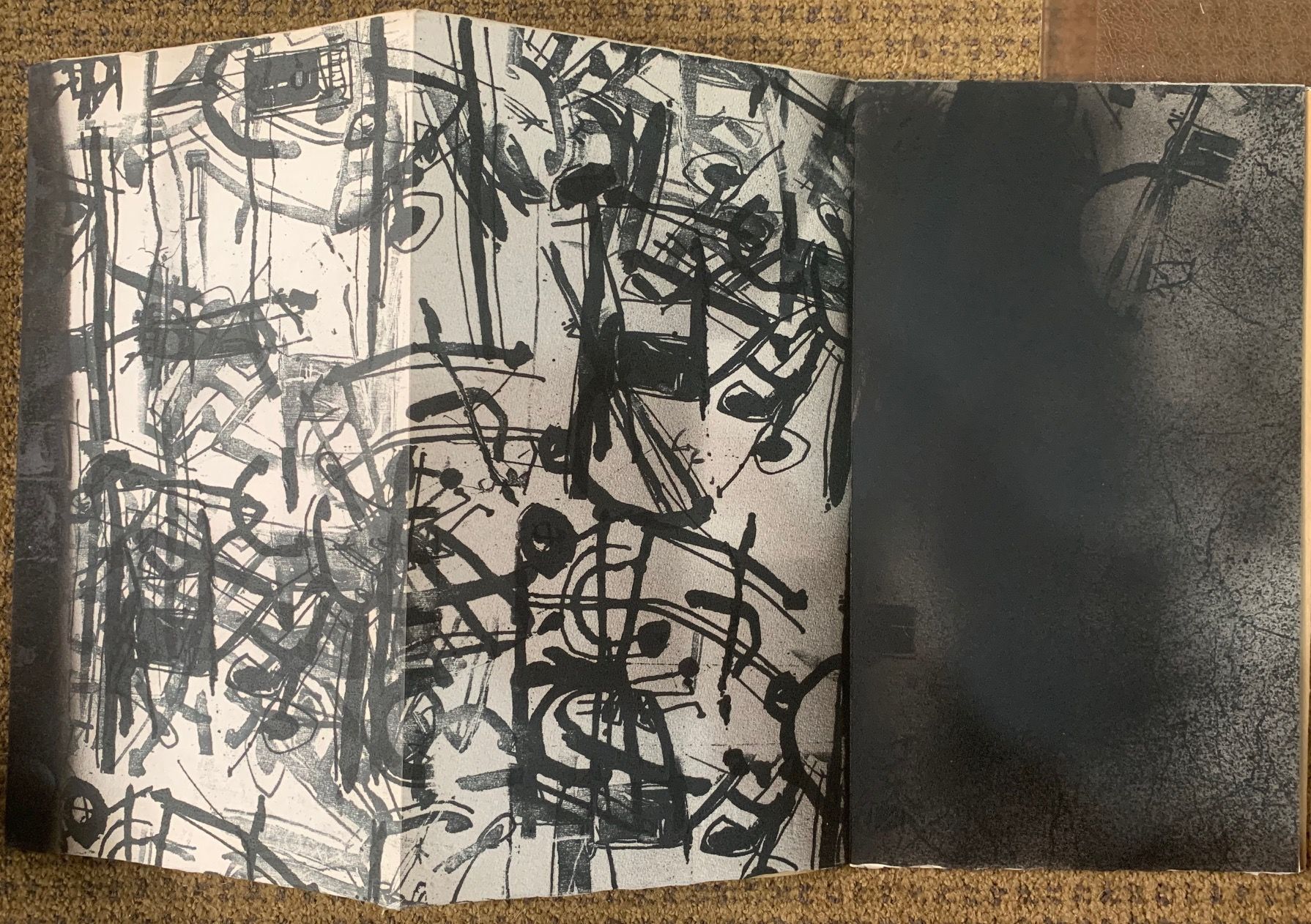 México, D.F.: Cocina Ediciones Mimeográficas, 1982. mimeographed pages, b/w plates, folded accordion style and stapled to b/w pict. wrps., ink stampings, pencil initialized signature in front cover. SIGNED (INITIALS) BY ARTIST. Handmade artists book comprsing a mimeographed print created by abstract artist Mario Rangel Faz (Mexico 1956-2009) who belonged to the Grupo Suma along with Gabriel Macotela, Paloma Díaz Abreu, René Freire, Santiago Rebolledo and Armandina Lozano, among others. He collaborated with Ediciones La Cocina, who sponsored his artist's books under the support of Yani Pecanins and Gabriel Macotela. OCLC-no record.
