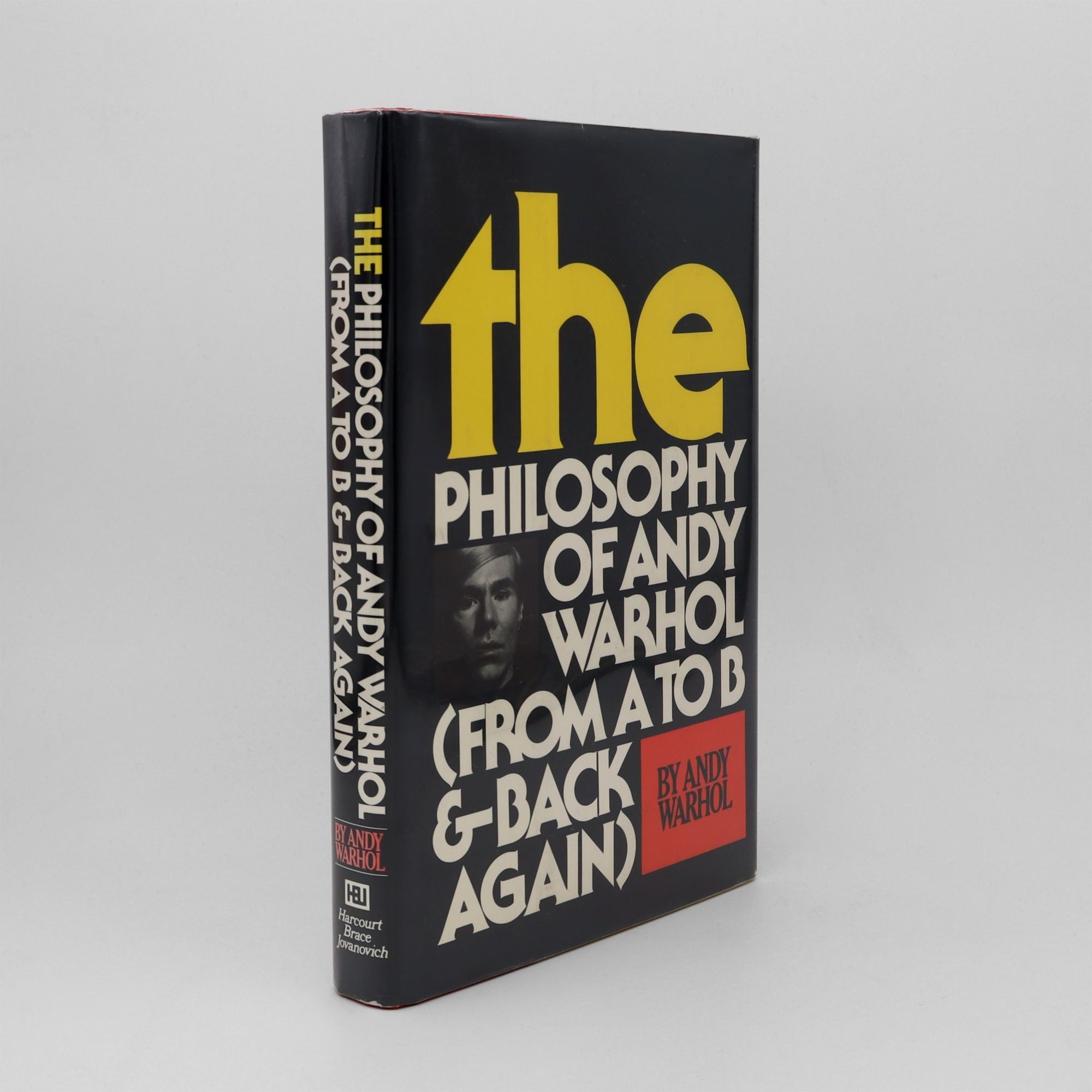 New York: Harcourt Brace Jovanovich, 1975. First edition. 241 pp. 1 vols. 8vo. Publisher's orange cloth backed yellow paper boards with author's signature stamped in black to upper cover, spine lettered in black and white. Black endpapers, inscribed by the author to half-title page, offsetting from signature ink to next two leaves, otherwise incredibly clean. A fine copy in a near fine dust jacket, lightly rubbed to corners and bottom edge of spine, small open tear to top edge of back panel. Housed in a custom black slipcase. First edition. 241 pp. 1 vols. 8vo. Inscribed by Warhol with his full signature plus "aw" initials in thicker pen, with a gestural soup can drawing. The seemingly personal dedication "to my Mich..." is regrettably indecipherable.