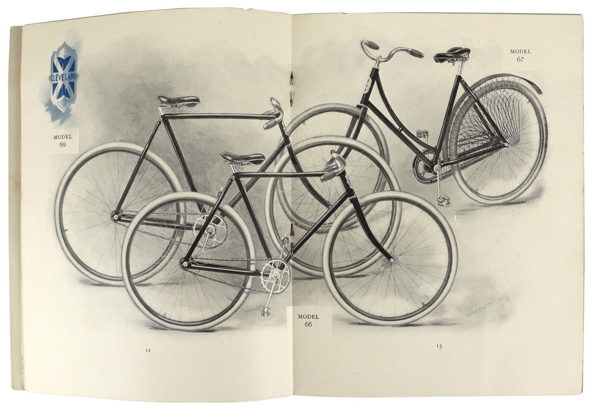New York: Bartlett & Company, 1899. Very Good+. New York: Bartlett & Company, 1899. Side-stapled octavo in illustrated card wrappers (20 cm); 24pp. Margins gently rubbed and bumped with light rusting to staples and tear down spine to both sides, stopping at first staple. Small creases to spine edge of covers and minor scuffing with small creases and closed tears to spotty back cover. Interior clean other than minor eraser abrasion to first page top corner and small ink (?) staining to verso of same page. A Very Good or better copy of Cleveland Bicycles 1899 trade catalogue.
