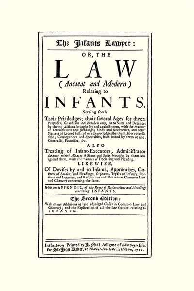 The Infants Lawyer: Or the Law (Ancient and Modern) Relating to..
