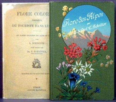 Zurich: Albert Raustein, 1904. Decorative Cloth. Collectible; Very Good/Very Good. 1904 9th edition of this beautiful guide to the flora of the Alps. Text in French, German and English. 207 flowers profiled in rich color, 10 in black-and-white. Octavo, Near Fine in its wonderful scenic pictorial cloth--and in a handsome, VG+ example of the original dustjacket.