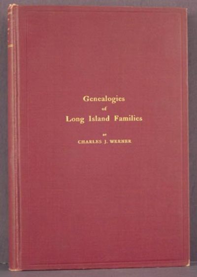 New York: Charles J. Werner Publisher, 1919. 1st. Decorative Cloth. Collectible; Very Good. A Collection of Genealogies Relating to the Following Long Island Families: Dickerson, Mitchill, Wickham, Carman, Raynor, Rushmore, Satterly, Hawkins, Arthur Smith, Mills, Howard, Lush, Greene". 1919 1st edition. Clean and VG+ to Near Fine in its original maroon cloth, with bright gilt-titling to the front panel and spine. Octvao, 170 pgs.