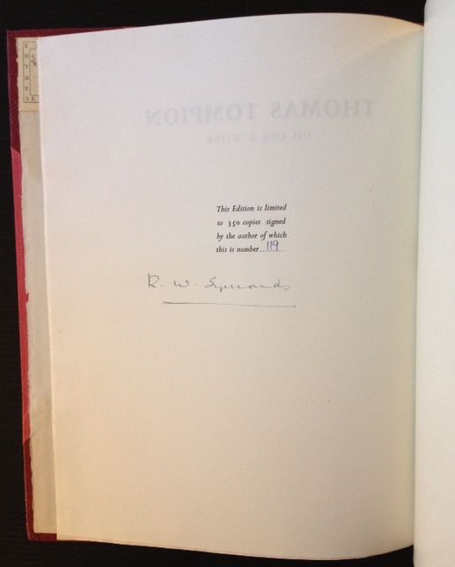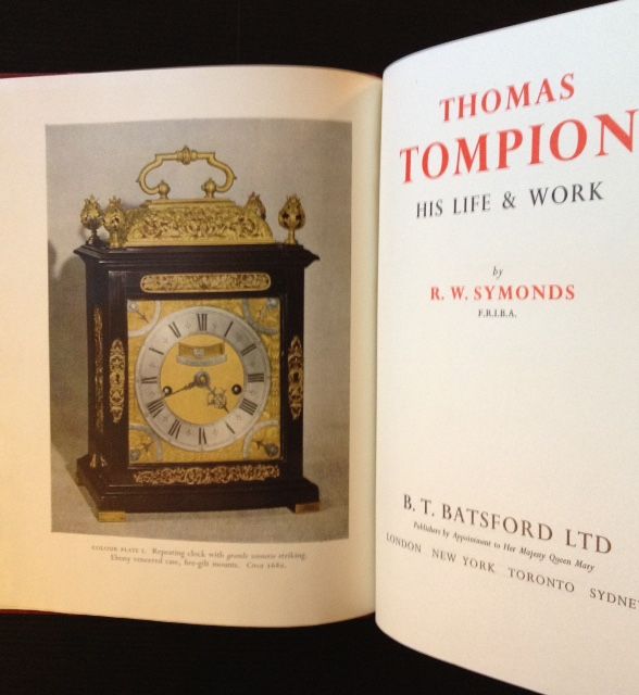 London: B.T. Batsford, Ltd, 1951. 1st. Half-Leather. Collectible; Very Good. #119 OF 350 COPIES SIGNED BY AUTHOR R.W. SYMONDS on the limitation page. A handsome copy to boot of the 1951 true 1st edition. Well-preserved and solidly VG+ in its half-morocco over matching red cloth. Gilt-decorated front panel, bright gilt-lettering to spine. Quarto, 320 pgs., top-edge gilt, crisp black-and-white plates thruout. Light fading along spine, otherwise clean as could be. Elegant monograph on England's pre-eminent clockmaker of the 17th century. Signed by Author.