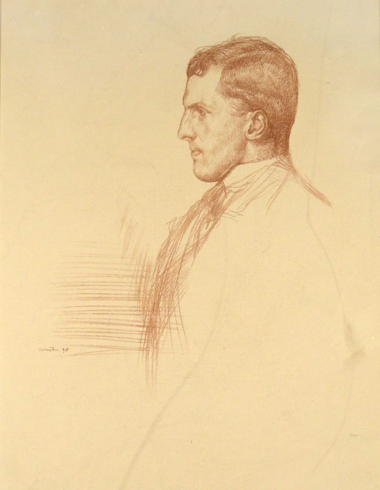 1898. Fine. RARE. Handsome original lithograph portrait of Stephen Phillips (1864 - 1915), the English poet and dramatist. The print was issued as part of a portfolio, Liber Juniorum, 1898, 50 copies, and also separately. Printed in red. Signed and dated by the artist on the stone. Published in "Liber Juniorum" (1898). Light soiling to print. 11" x 18" in a mat which measures 16" x 20". ART/012609.