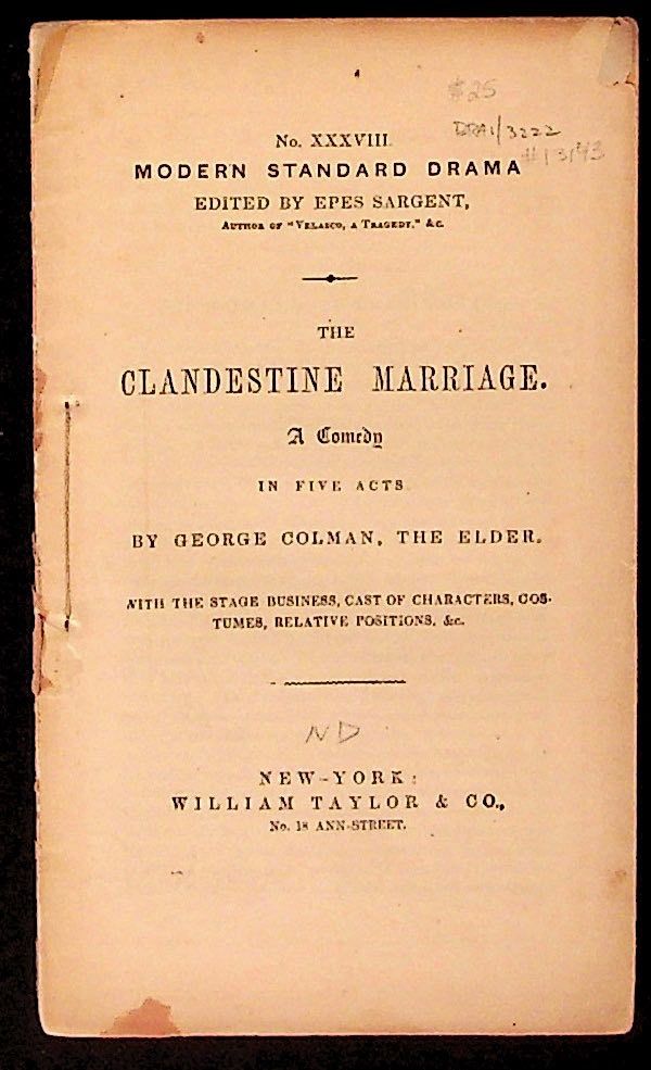 New York: William Taylor and Company, No Date. Paperback. Very Good. Paperback. SCARCE. Very good-. Front wrapper and spine are missng. Rear wrapper is present. Light edgewear to title page (which acts as front wrapper. Text is clean and bright. 82 pages. Drama. DRA1/3222.