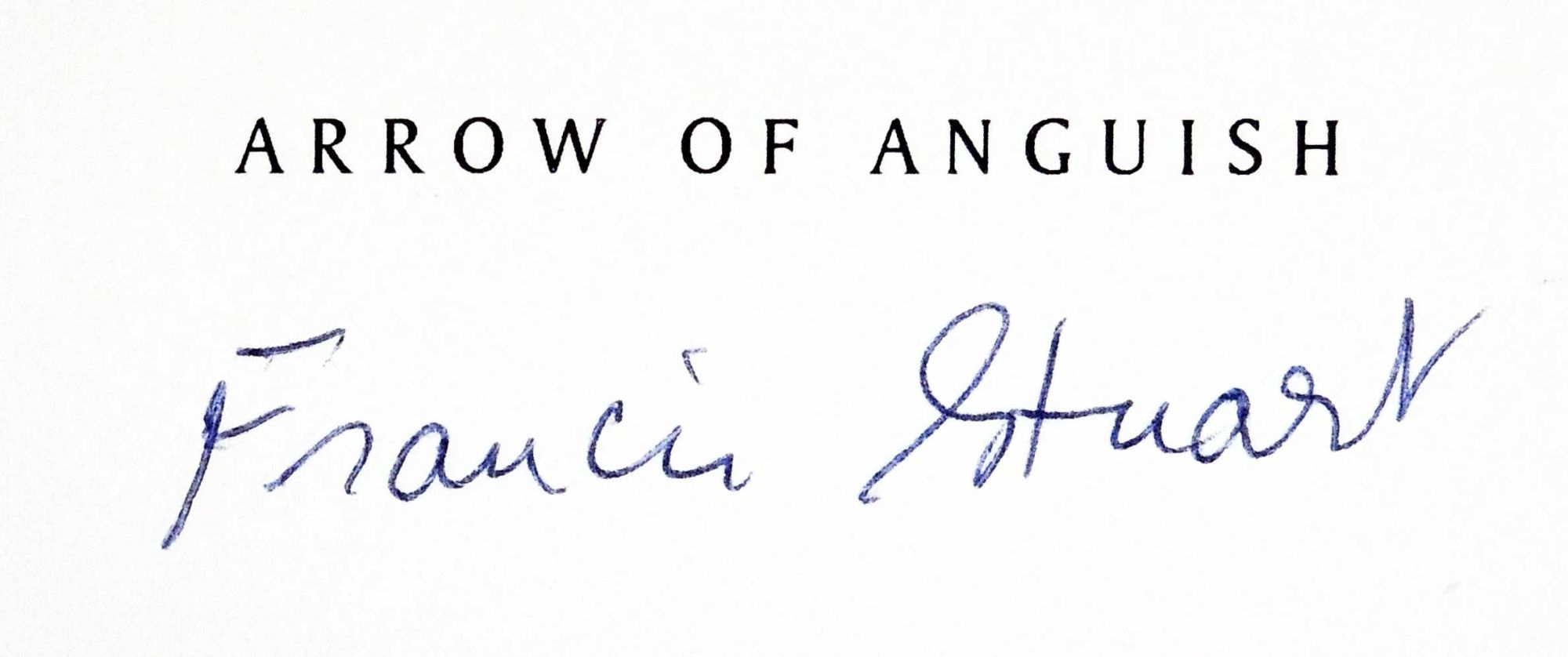 Dublin: New Island Books, 1995. Paperback. Fine. Paperback. SIGNED BY AUTHOR. 1 of 400 copies. Includes 16 poems. Irish author Henry Francis Montgomery Stuart (1902 - 2000) was awarded one of the highest accolades in Ireland before his death; however, he was criticized for the time he spent in Nazi Germany."Today Francis Stuart remains a shamefully neglected major figure in Irish writing. These poems speak honestly out of that loneliness and isolation with the same clarity of insight and unconquerable spirit which has characterized his life's work. Arrow of Anguish is a testament to survival by a voice that refuses to be silenced" (rear cover).