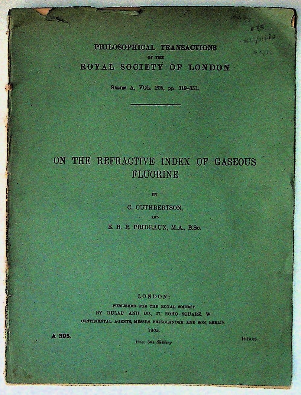 Philosophical Transactions of the Royal Society of London: On the Refractive Index of Gaseous Fluorine
