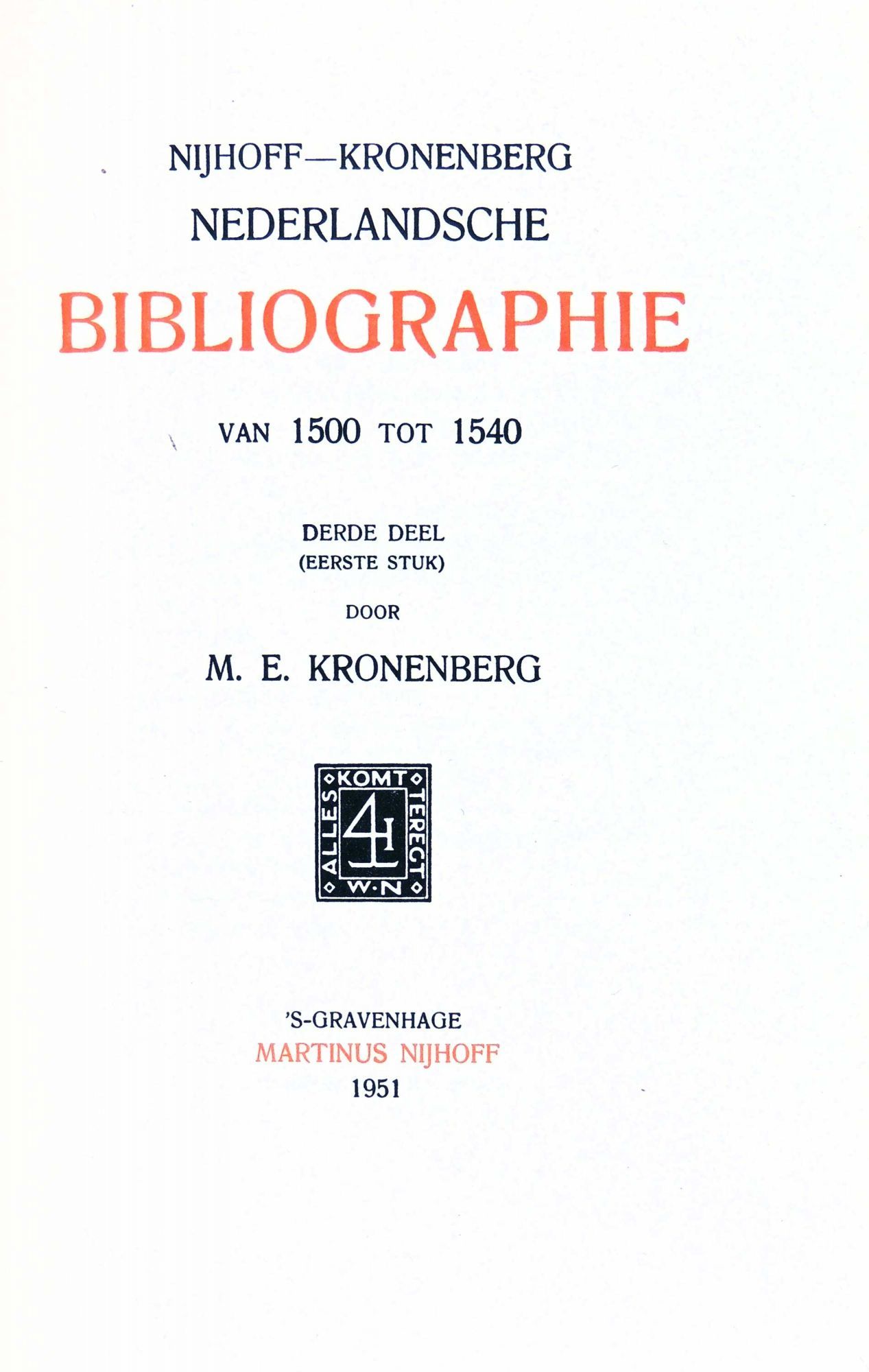 Nederlandsche Bibliographie Van 1500 Tot 1540