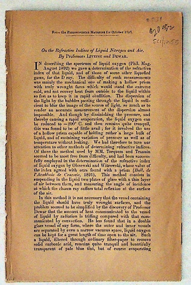 On the Refractive Indices of Liquid Nitrogen and Air. From the Philosophical Magazine for October 1893