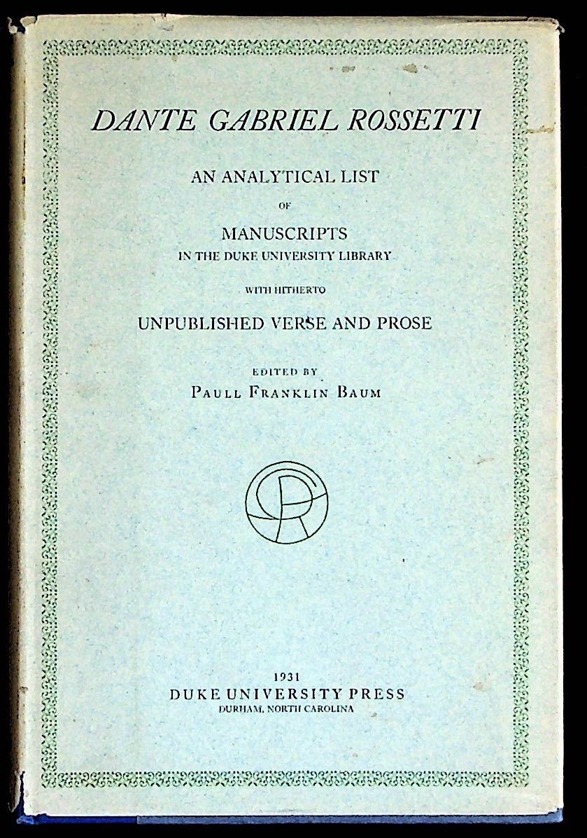 Dante Gabriel Rossetti. An Analytical List of Manuscripts in the Duke University Library with Hitherto Unpublished Verse and Prose
