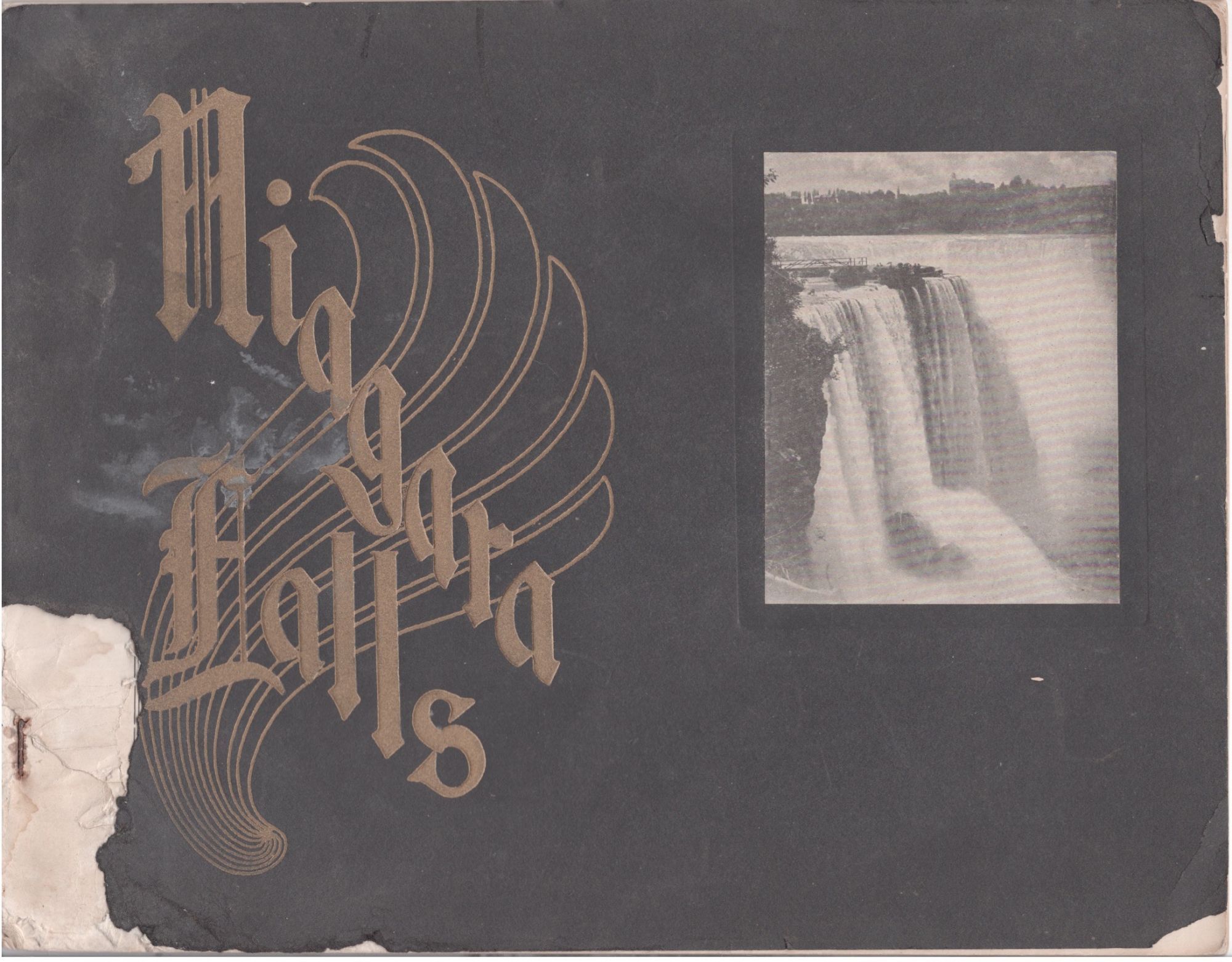 Niagara Falls, NY: Nicklis and Mather. Paperback. Good +. Paperback. Oblong quarto. Good + in black paper wraps with photograph and gilt lettering. Front cover has a 2 inch chip to bottom left corner. Minor soiling to front wrapper. Faint dampstain to lower corner of first few pages, barely noticeable. Minor browning to page. Black and white illustrations throughout. Travel. NY1/2182.