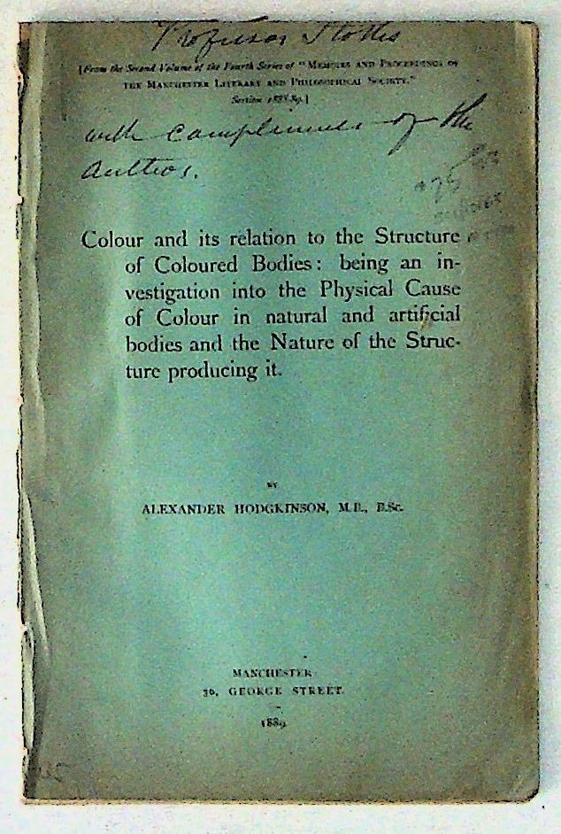 Colour and its relation to the Stucture of Coloured Bodies: being an investigation into the Physical Cause of Colour in natural and artificial bodies and the Nature of the Structure producing it. From the Second Volume of the Fourth Series of Memoirs and