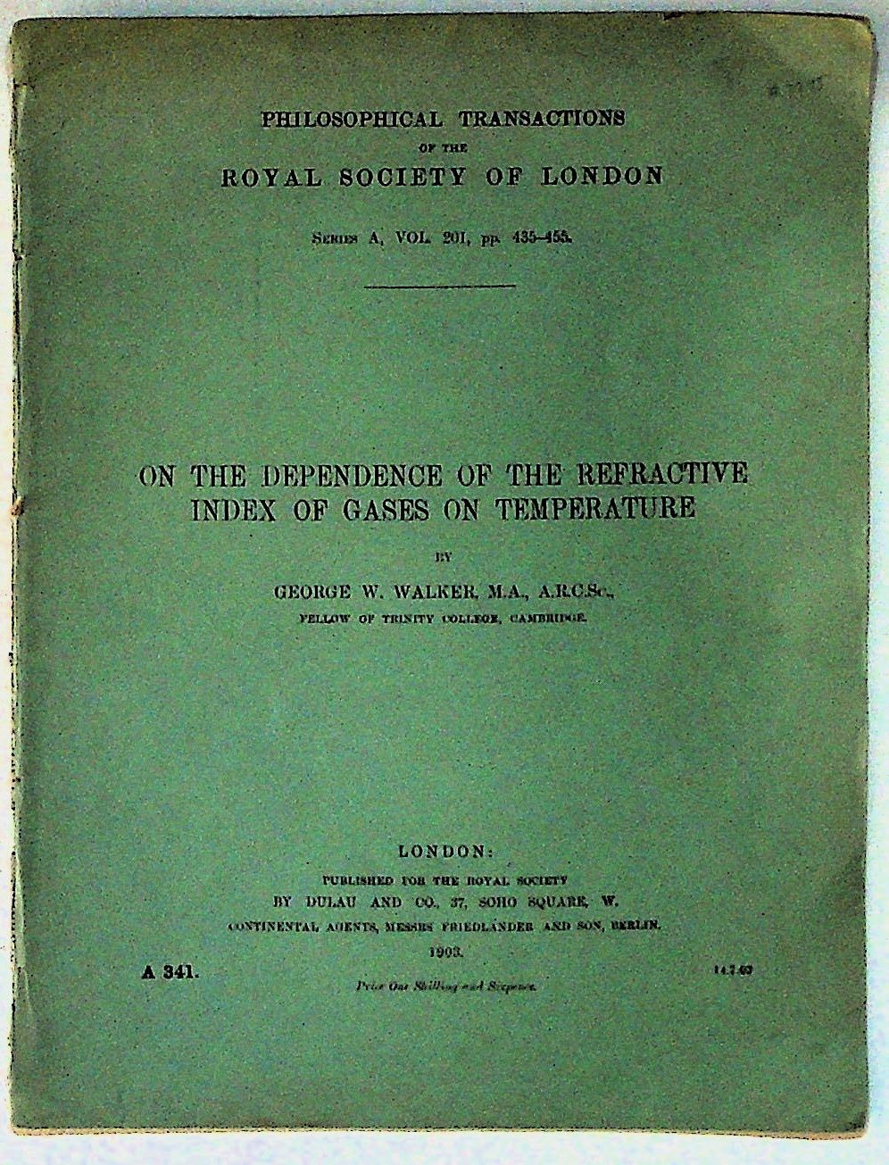 On the Dependence of the Refractive Index of Gases on Temperature. Philosophical Transactions of the Royal Society of London, Series A, Vol. 201, pp. 435-455