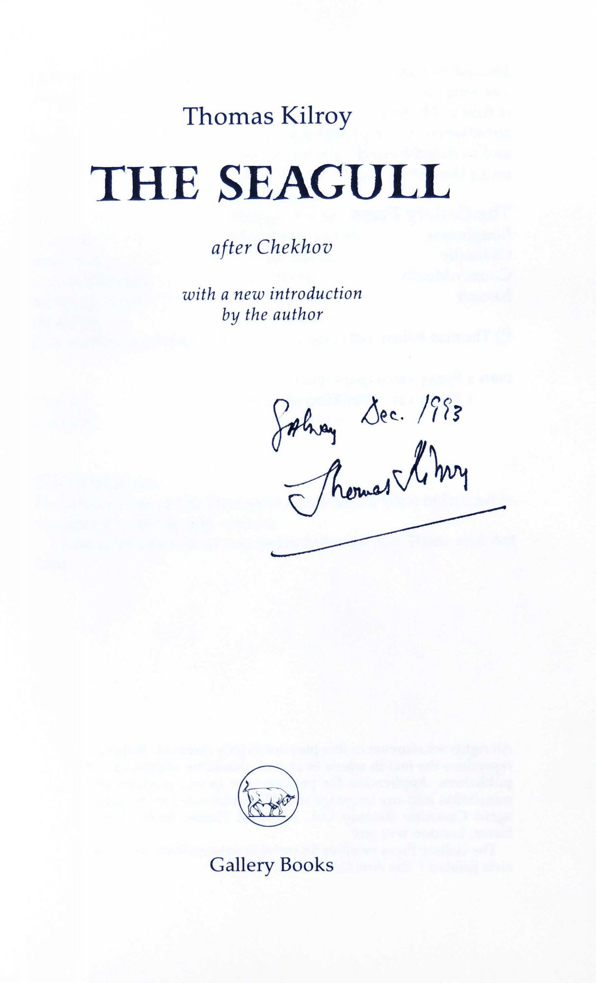 Ireland: Gallery Press, 1993. Hardcover. Fine/Fine. Hardcover. SIGNED BY AUTHOR. An adaption of Chekhov's masterpiece in which Kilroy has transported the story from Russia to West Ireland. Kilroy's first novel "The Big Chapel" was shortlisted for the Booker Prize and won both the Guardian Fiction Prize and the Heinemann Award. Black cloth boards with gilt title to spine. Pristine interior with tight binding. Grey dust jacket with white title to spine. 87 pages. DRA/012908.