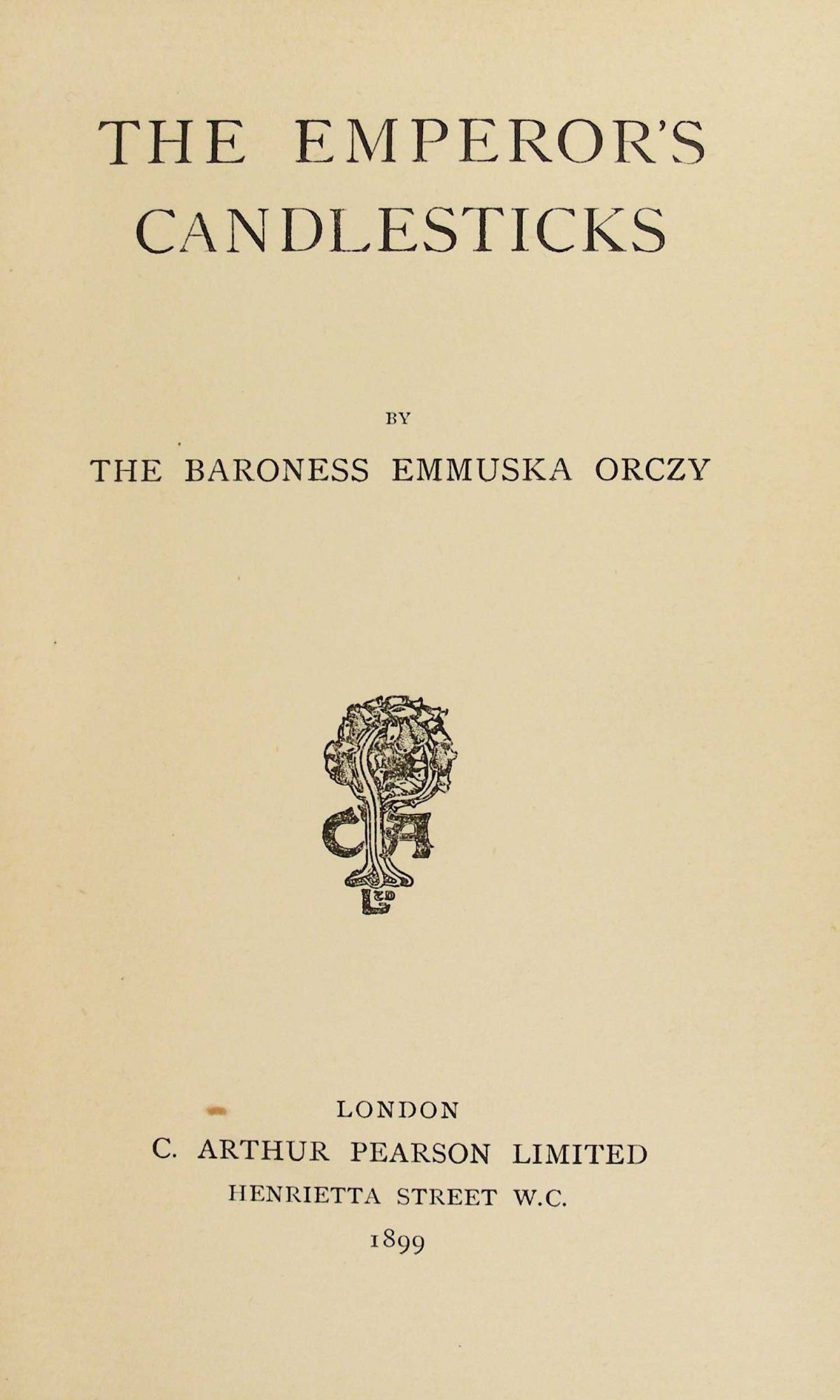 London: C. Arthur Pearson Limited, 1899. Hardcover. Very Good. Hardcover. First edition. This is the second book (and first novel) by the author of The Scarlet Pimpernel, which first appeared as a play in 1903 and was later released as a novel. This book is a tale of jewels, intrigue, and high Russian society. It is scarce in this condition. The author, Baroness Orczy (1865 - 1947), was born in Hungary and grew up in London. Very good plus in original tan cloth boards with brown title to spine and front board. Minor wear to edges and spine ends. Light rubbing to boards. A few spots of foxing to the interior, else very clean. Bookplate of book collector, Mark Samuels Lasner, is tipped in on the front pastedown. 288 pages. LIT/050109.