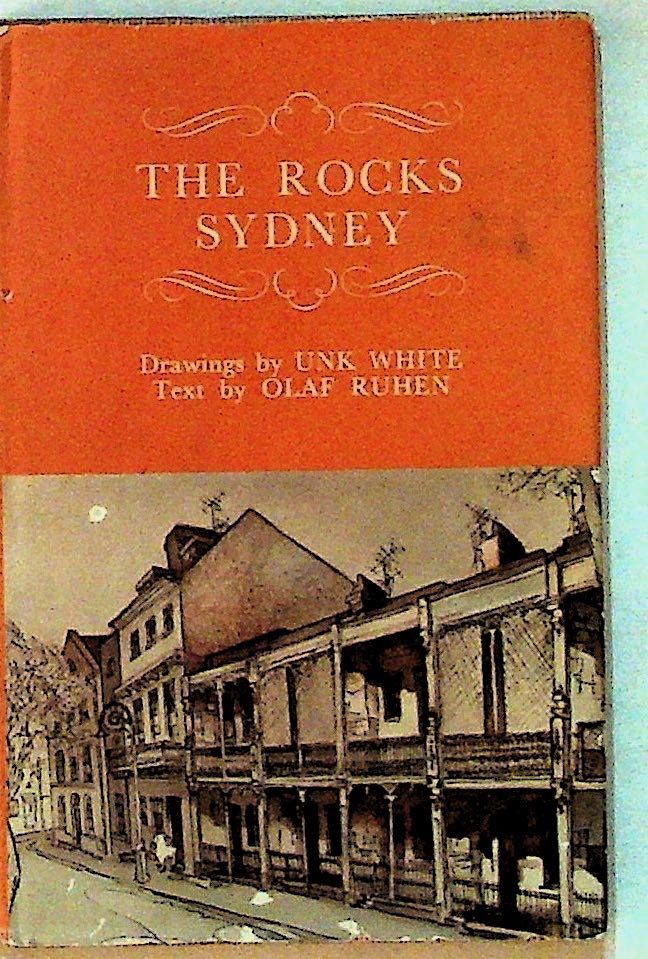 Sydney: Halstead Press, 1966. Hardcover. Very Good +/Very Good. Hardcover. The Rocks is currently a tourist and historic area near Sydney, Australia's city center. The Rocks is one of the oldest British settlements in Australia, established shortly after the colony's formation in 1788. From the establishment of the settlement, it had a reputation as a slum where arriving convicts lived, and where visiting sailors and prostitutes thrived. In the late 1960s, the Sydney Cove Redevelopment Authority proposed redeveloping the area with high-rises. A residents group opposed the plan. After years of negotiation,The Rocks was renovated and transformed into a commercial and tourist zone. This book is an attempt to memorialize The Rocks of its earlier days through the black-and-white illustrations of Unk White, a renowned New Zealand artist who lived in The Rocks when he first moved to Australia. The illustrations are accompanied by text written by Olaf Ruhen, a native New Zealander and well-known Australian writer. SIGNED by Unk White on half-title page. SCARCE in the 1966 edition in the United States. Octavo. Salmon/white patterned paper-covered boards with salmon cloth covering to spine. Title in white to spine. Salmon-colored dust jacket with illustration to front panel. Title in white to front panel and black to spine panel. Jacket has small scrapings, smudges, and minor tears around edges. Jacket is price-clipped. Pages are bright and clean. 59 pp. AUS1/9262.