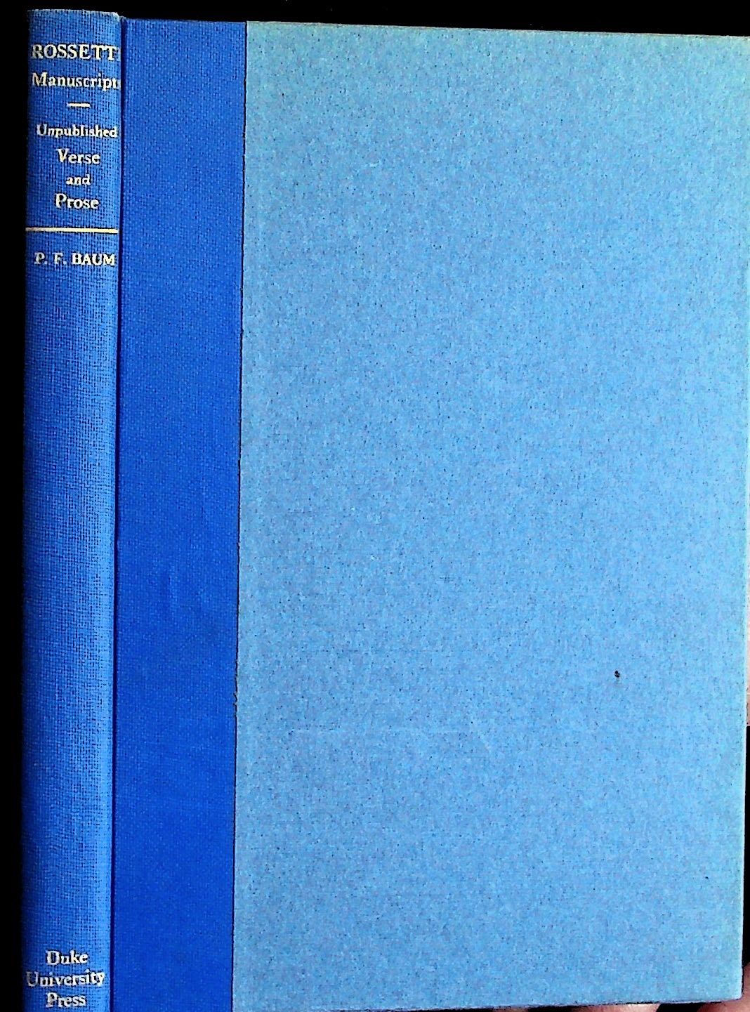 Dante Gabriel Rossetti. An Analytical List of Manuscripts in the Duke University Library with Hitherto Unpublished Verse and Prose