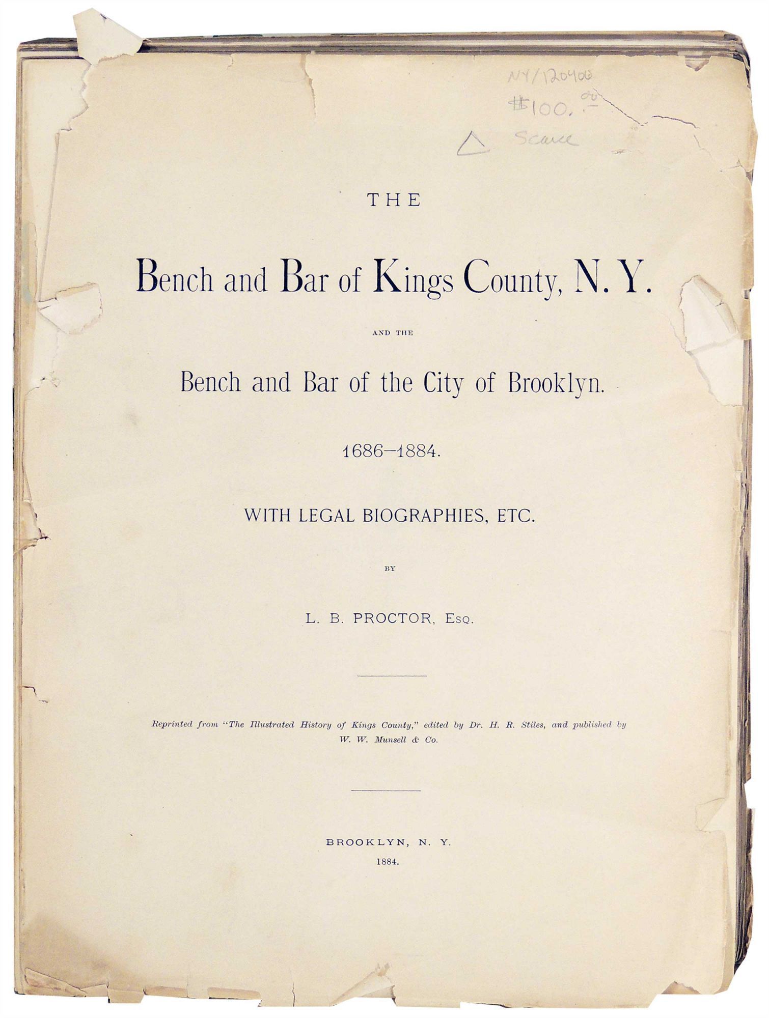 The Bench and Bar of Kings County, N.Y. And Bench and Bar of the City of Brooklyn. 1686 - 1884. With Legal biographies, Etc.