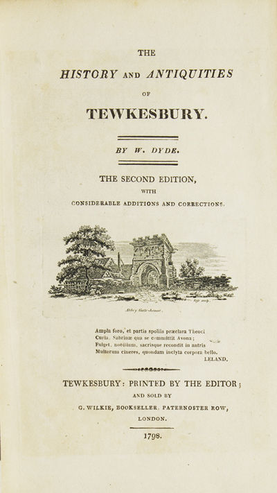Tewkesbury: Printed by the editor; and sold by G. Wilkie, Bookseller, Paternoster Row, London, 1798. Second edition, with considerable additions and corrections. Frontispiece, plan of Tewekesbury, three plates, two vignettes. xxiv, [2], [25]-243 pp. 1 vols. 8vo. Contemporary diced calf. Some traces of rubbing. Very good. Second edition, with considerable additions and corrections. Frontispiece, plan of Tewekesbury, three plates, two vignettes. xxiv, [2], [25]-243 pp. 1 vols. 8vo.