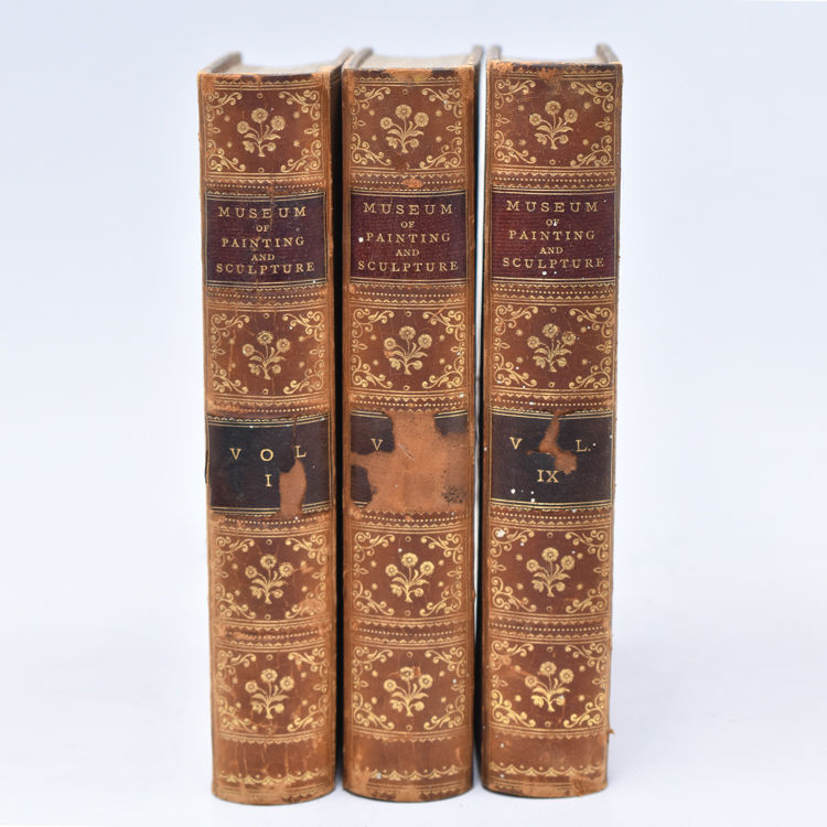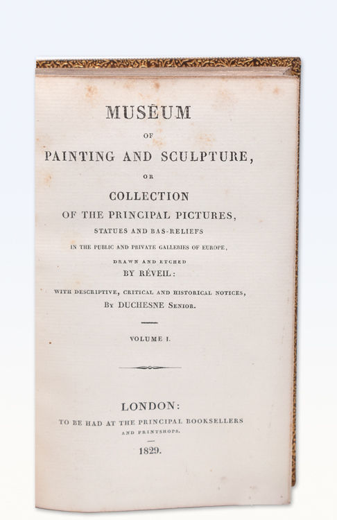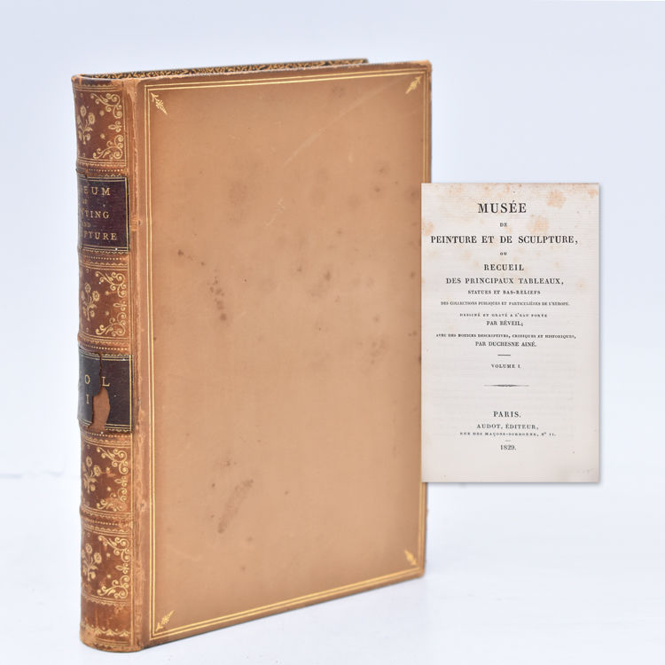 London & Paris: Rossange, Barthes and Lowell; Audot, Éditeur, 1834. Dessiné et gravé a l'eau forte par Réveil, Avec des notices critiques et historiques par Duchesne Ainé. TEXT IN ENGLISH AND FRENCH. With The Logge del Vaticano, drawn and etched on steel, by Reveil; from Rafaelle's Frescoes (Volume 17, 1833). Paris: Printed by Rignoux. 17 vols. 12mo. Bound in full tan polished calf, gilt spine, t.e.g., some labels chipped with loss, by MacDonald & Sons. Dessiné et gravé a l'eau forte par Réveil, Avec des notices critiques et historiques par Duchesne Ainé. TEXT IN ENGLISH AND FRENCH. With The Logge del Vaticano, drawn and etched on steel, by Reveil; from Rafaelle's Frescoes (Volume 17, 1833). Paris: Printed by Rignoux. 17 vols. 12mo.
