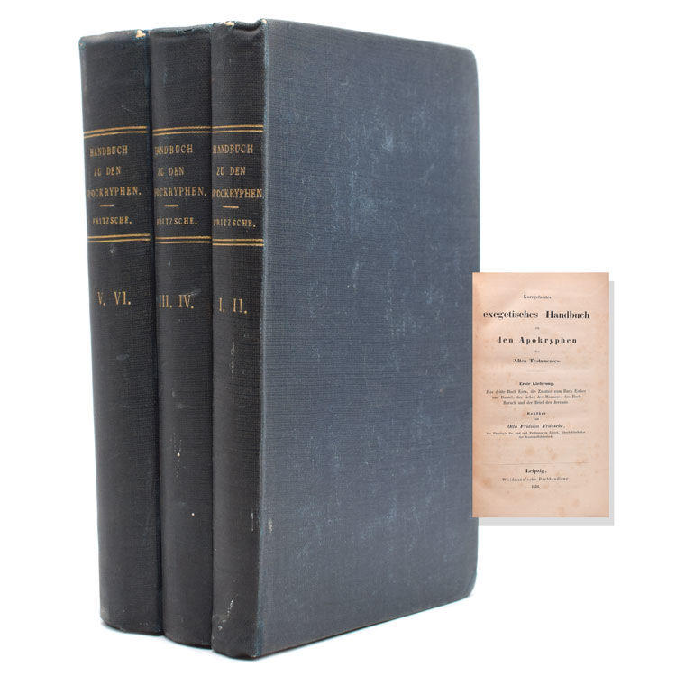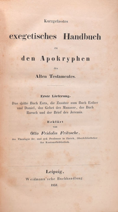 Kurzgefasstes exegetisches Handbuch zu des Apokryphen des Alten Testamentes. [In six parts:] [1] Erste Lieferung. Das dritte Buch Esra, die Zusätze zum Buch Esther und Daniel, das Gebet des Manasse, das Buch Baruch und der Brief des Jeremia. [2] Die Bücher Tobi und Judith. [3] Das erste Buch der Maccabäer. [4] Das zweite, dritte und vierte Buch der Maccabäer. [5.] Die Weisheit Jesus-Sirach's. [6] Das Buch der Weisheit