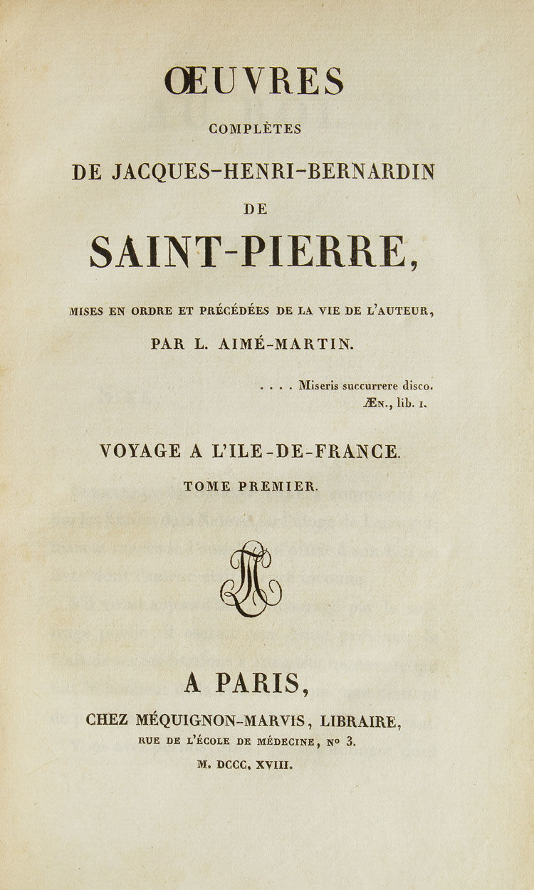 - Mises en ordre et Précédées de la Vie de l'Auteur, par L. Aimé-Martin. Engraved frontispiece portrait of the author in volum