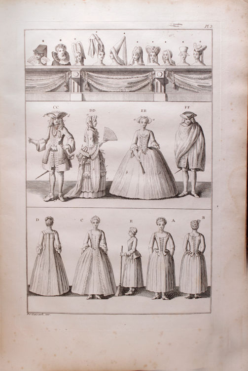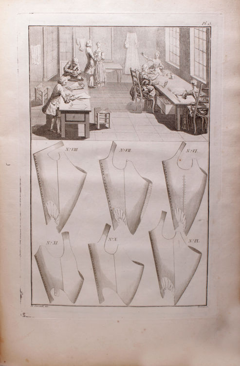 [Paris], 1769. 60, [2] pp. 16 full-page engraved plates. 1 vols. Folio. Bound in contemprary mottled calf, wear at top and bottom of spine, some staining, but minor, with ties. 60, [2] pp. 16 full-page engraved plates. 1 vols. Folio. From Diderot-d’Alembert’s Encyclopédie, which was published in Paris, Neuchatel, and Amsterdam, from 1751-1780. The plates (Recueil de Planches) were published in 11 volumes from 1762-1777, and are among the glories of book illustration of the 18th century — as are these fine plates.