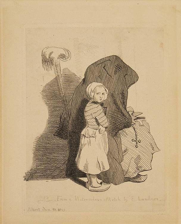 1843. Signed lower left "Albert Jan. 10, 1843.". 1 vols. Approx. 7-1/4 x 6 inches. Etching by Prince Albert, matted. Signed lower left "Albert Jan. 10, 1843.". 1 vols. Approx. 7-1/4 x 6 inches. Rare - the plate for this print remained private and was never used for a published edition.